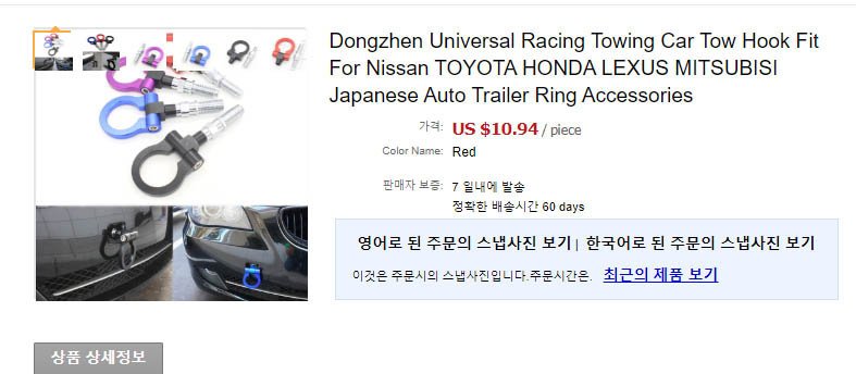 판매자에 번역기 돌려가며 사이즈 틀리다 환불해달라고 몇일밤을 고생하고 이 견인후크는 환불을 받긴 받았습니다만...