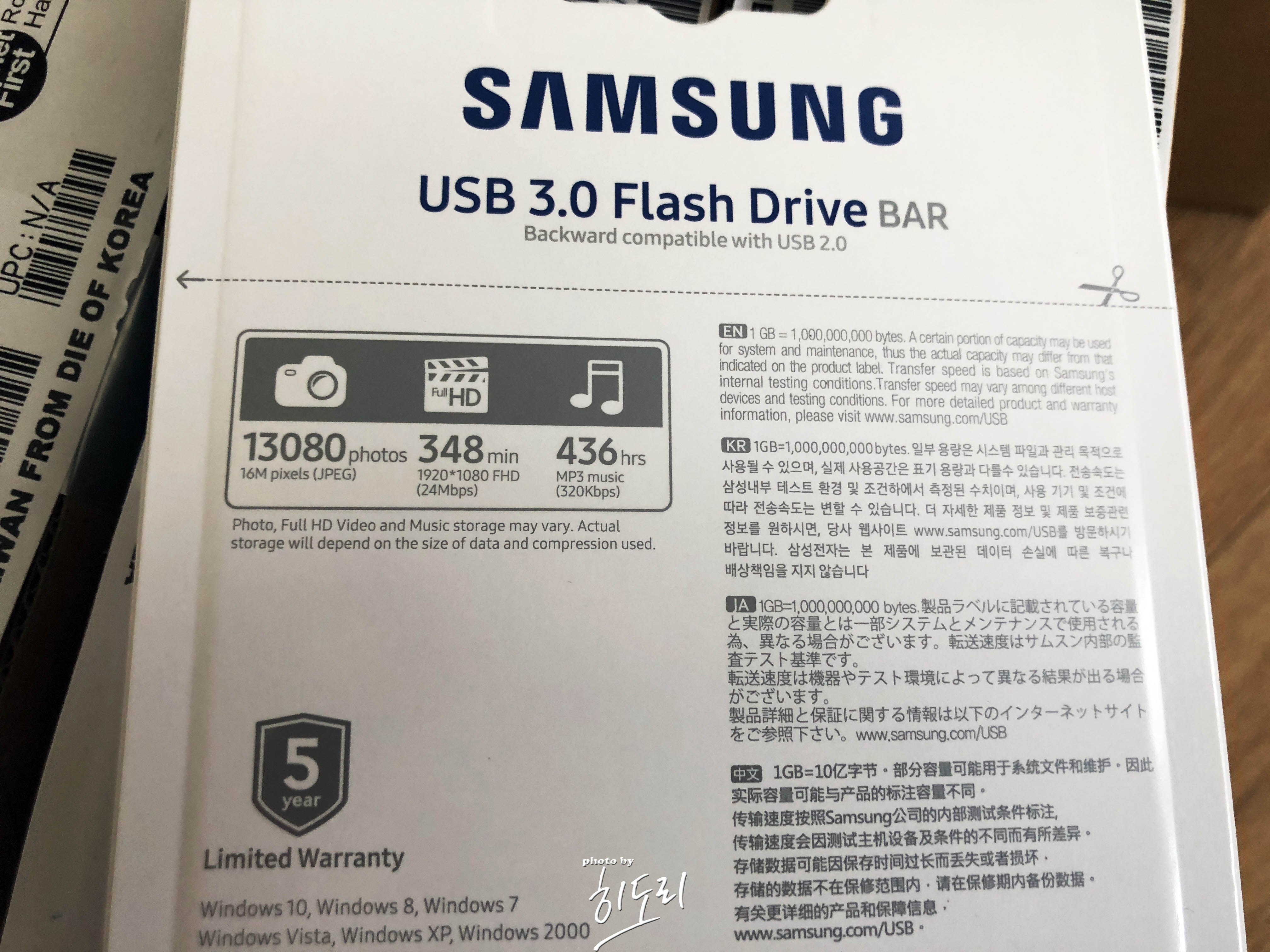 아무튼 MUF-64을 구입한 가장 큰 이유는 USB 3.0 속도 지원이 가장 컸습니다. 또 USB 한번씩 뻑날때가 있는데 삼성제품인 경우 동네 곳곳에 AS센터가 있고 AS신청하면 묻지도 따지지도 않고 메모리 종류들은 신품으로 교환을 해주더군요.