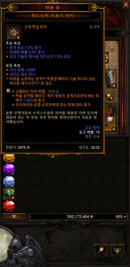 방패는 분노의 방패로 셋팅 합니다. 딜을 넣기 위해 꼭 필요하죠~