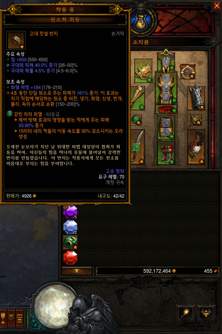 반지는 원소의 회동과 황도궁으로 셋팅~
