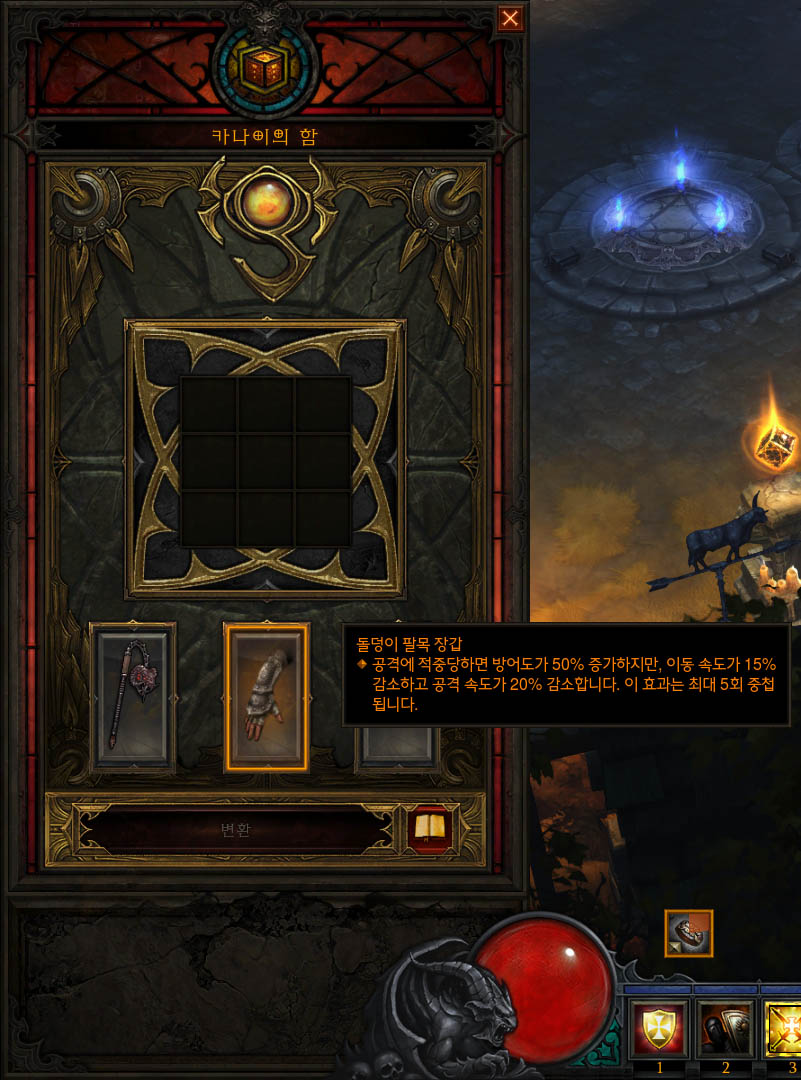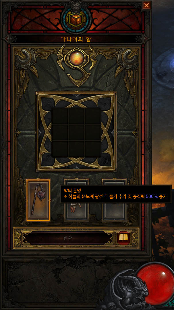 카나이에는 악의운명,돌덩이 팔목장갑,왕실반지 넣어주면 됩니다.