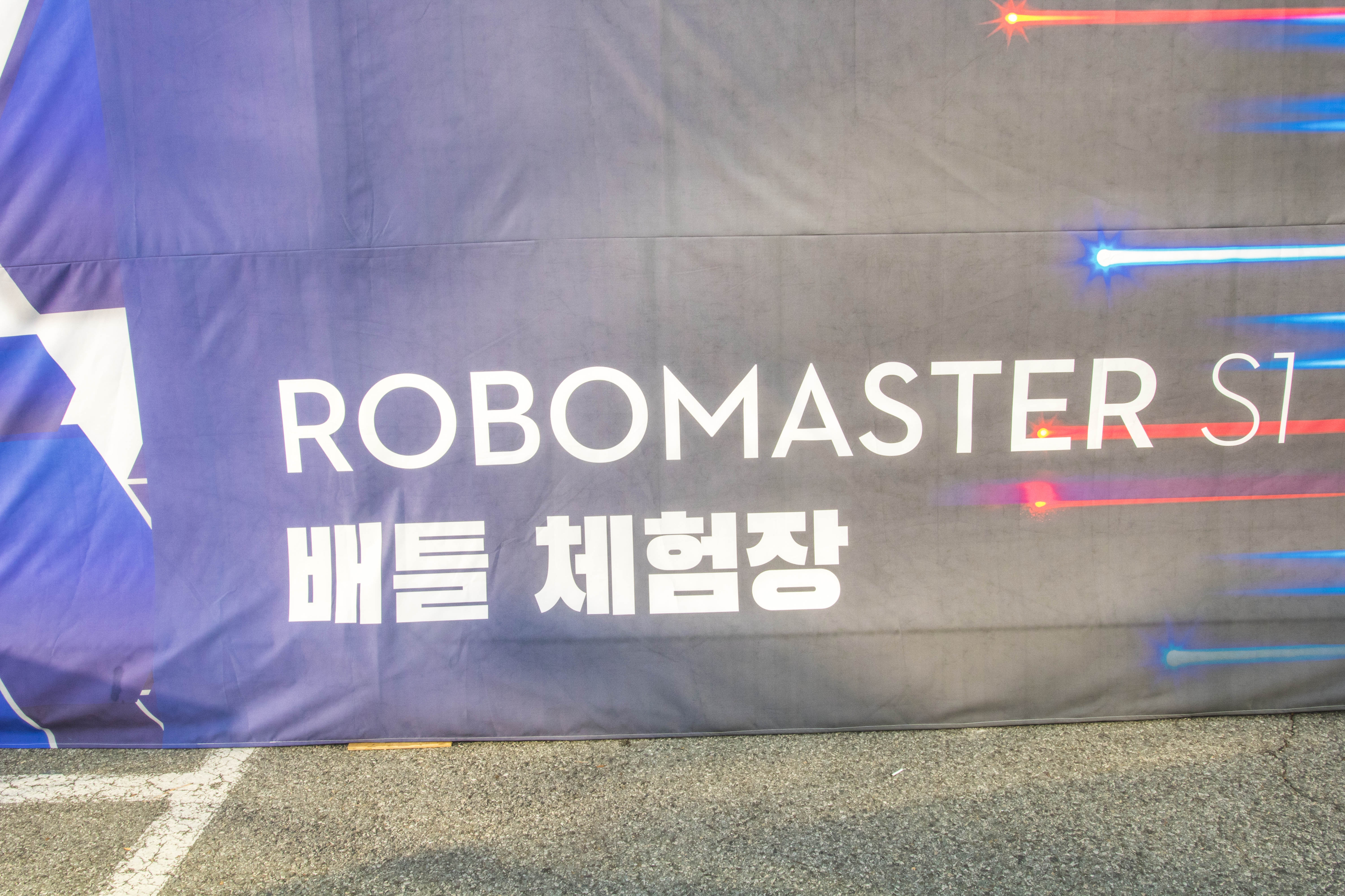 대회장에 들어가기전 야외부스에는 로보마스터 배틀 체험장이라고 적혀 있는 부스가 있었습니다.