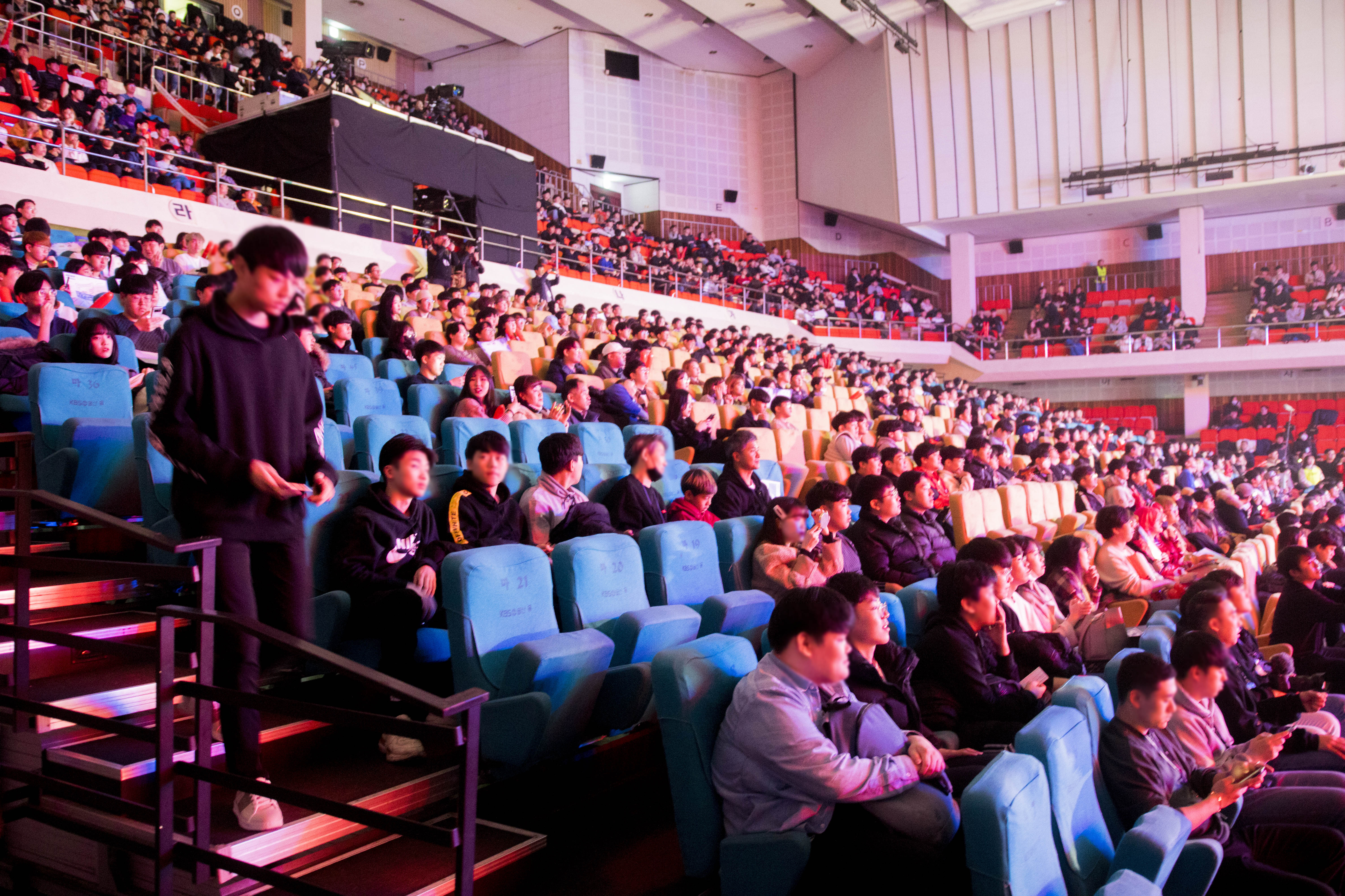 대회가 시작되고 아까전 응원소리는 사라지고 현장에서는 팽팽한 긴장감과 함께 대회 플레이 영상에 집중을 하기 시작했습니다.