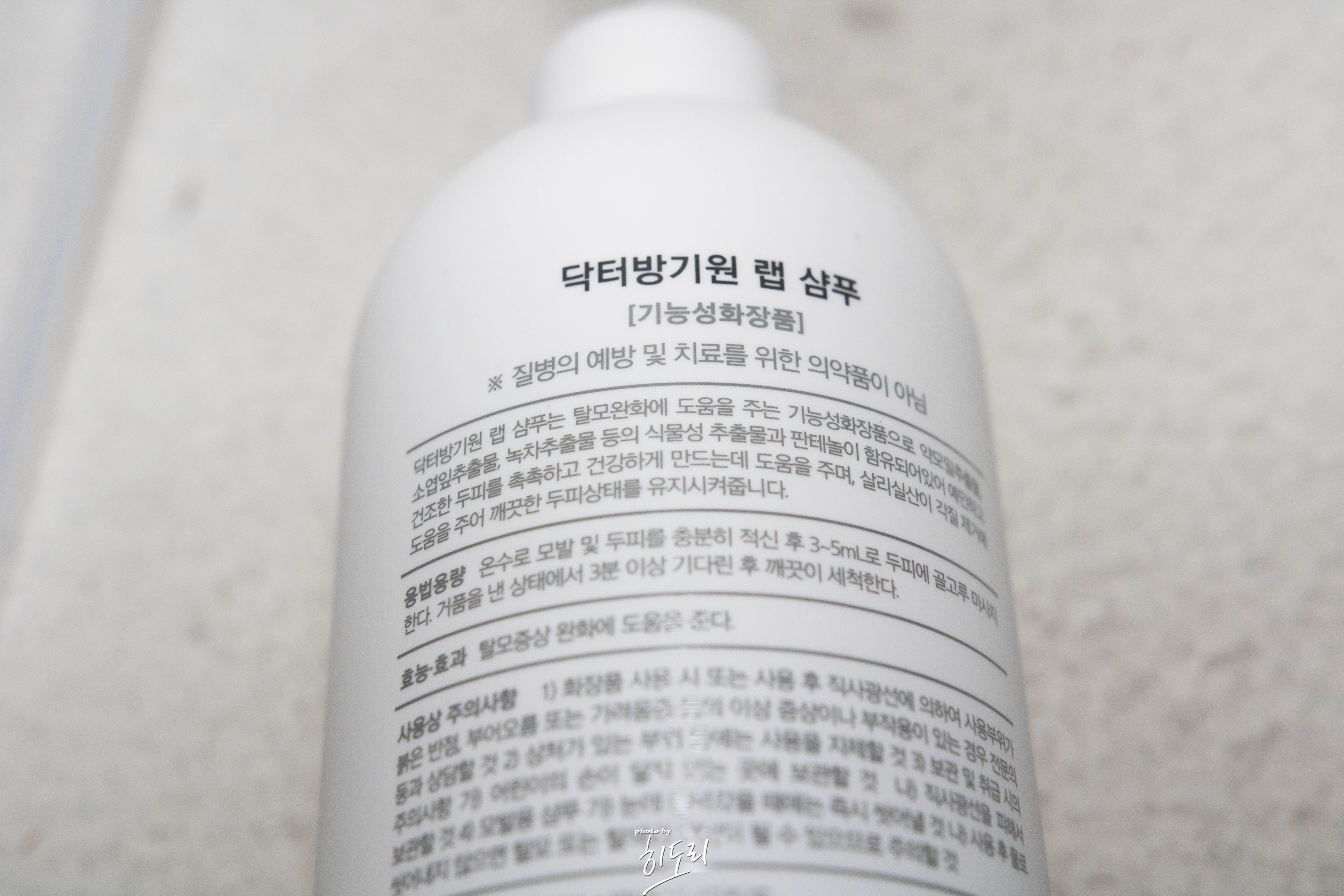 닥터방기원 랩 샴푸는 일단 탈모완화를 위해 모발의 토양이 되는 두피를 깨끗하고 강하게 만들어주는것에 초점을 가진 샴푸 입니다.