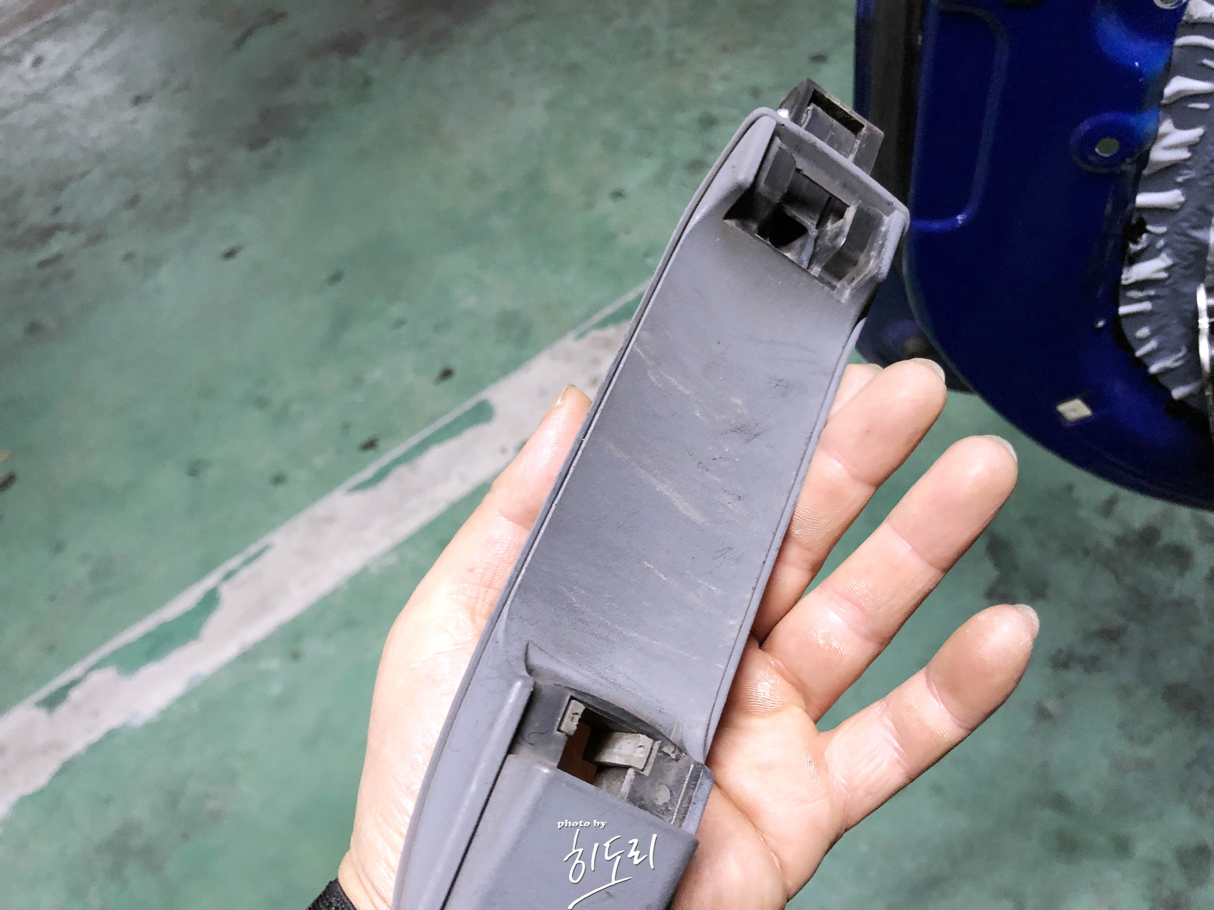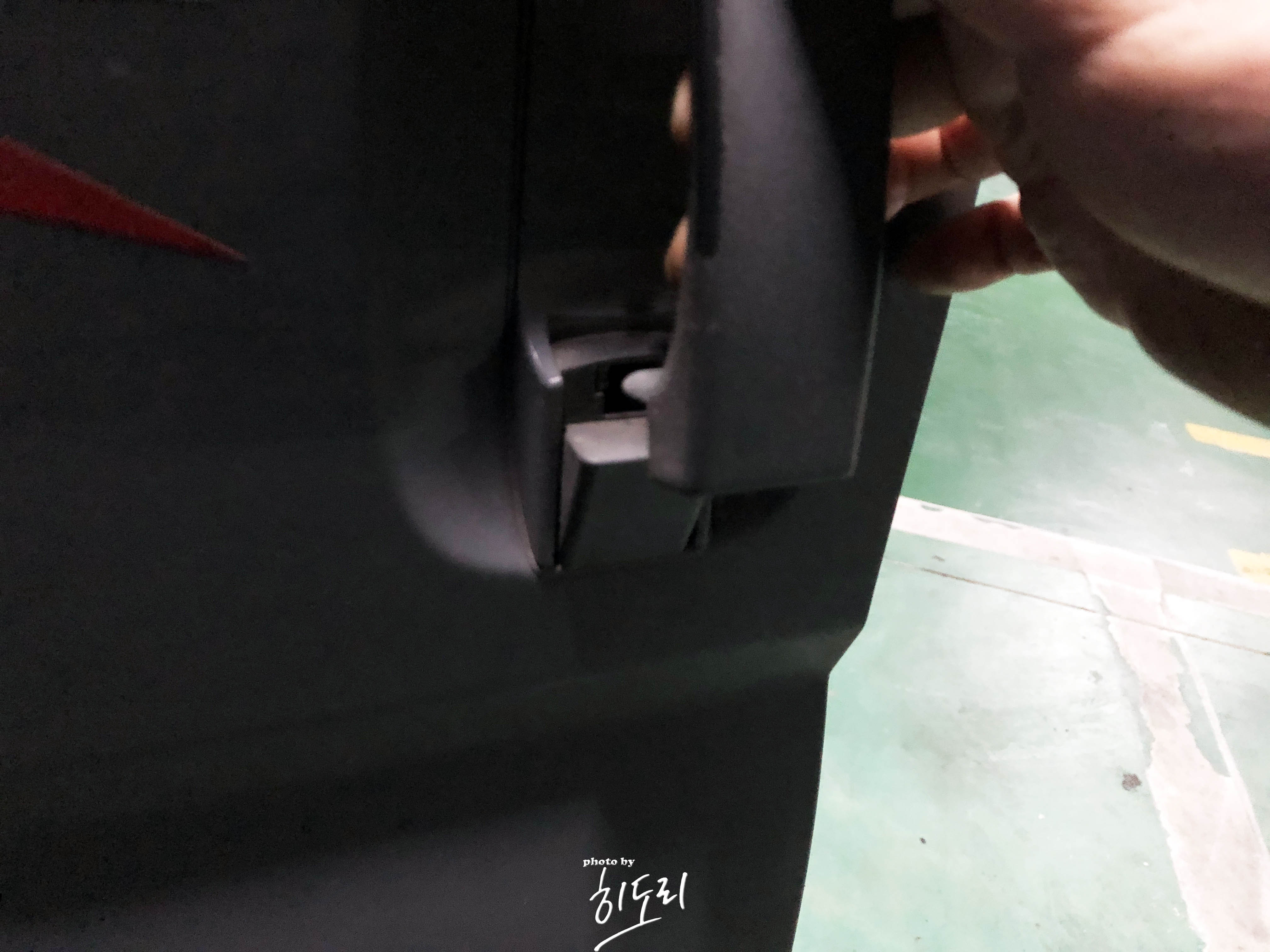 인터넷에 떠돌아다니는 글을 보면 면장갑 등을 틈 사이에 끼워서 제치라고 하는데 이방식은 몇 번 시도해보니 썩 추천드리지 않고 일자 드라이버 같은 걸로 손잡이 틈 사이를 살짝 벌린 다음 클립 아랫부분을 재껴주시면 쉽게 빠집니다.