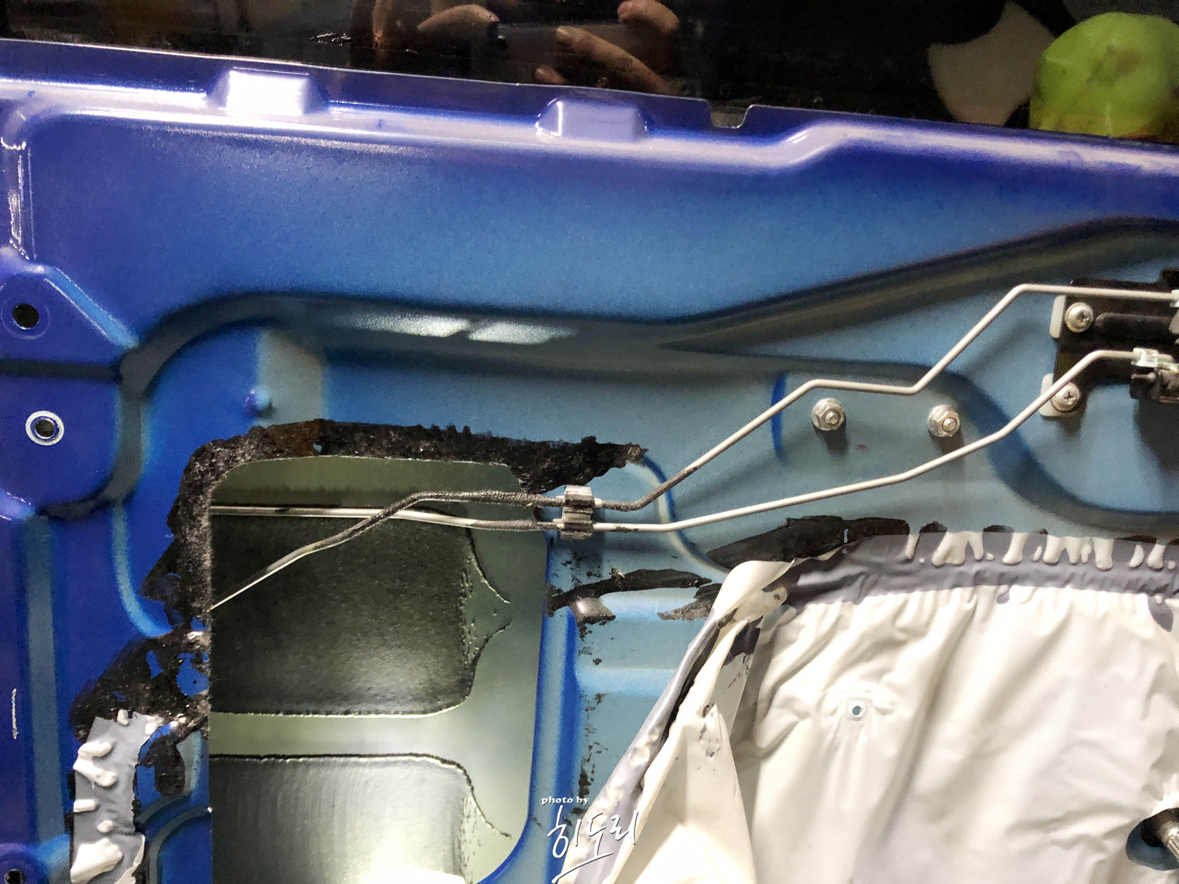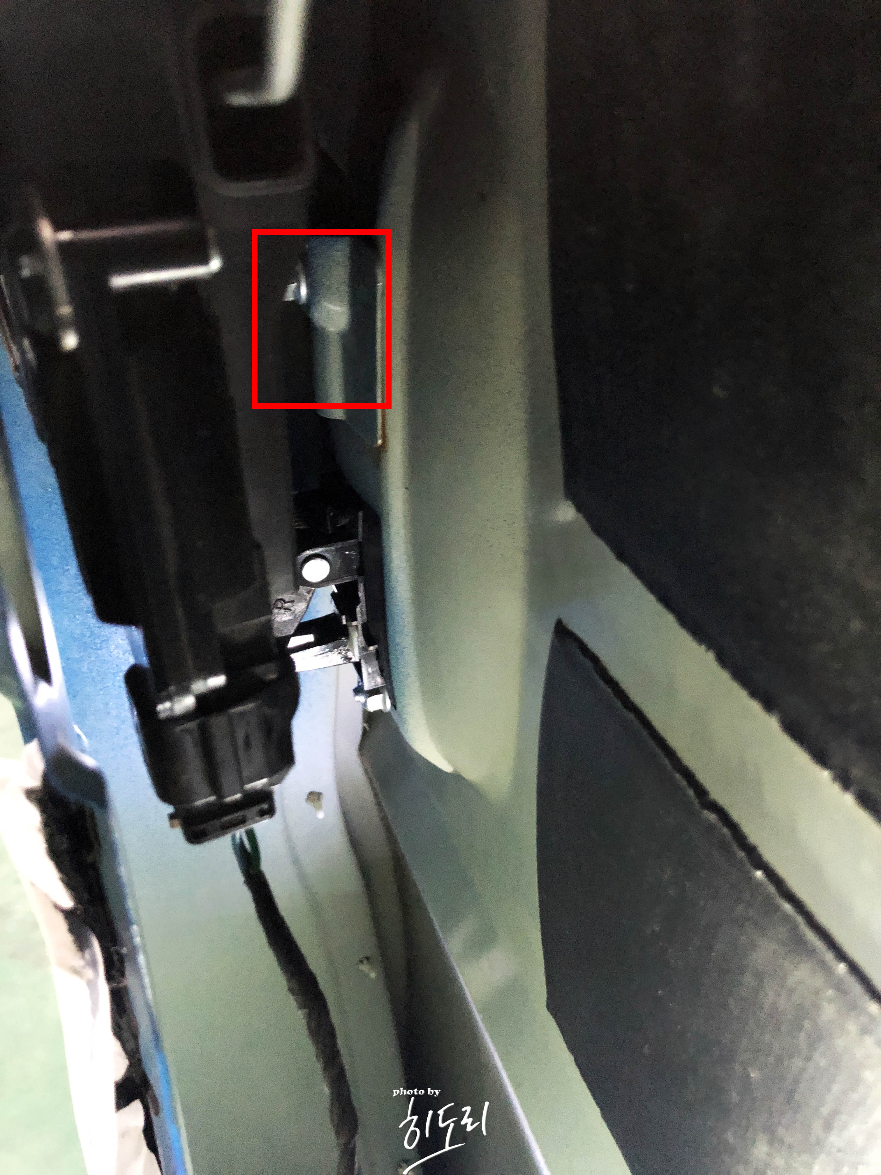 물론 앞도어는 훨씬 쉽습니다. 도어 모터 탈착 안 해도 외캐치 빼낼 수 있는 공간이 있기도 하고요.