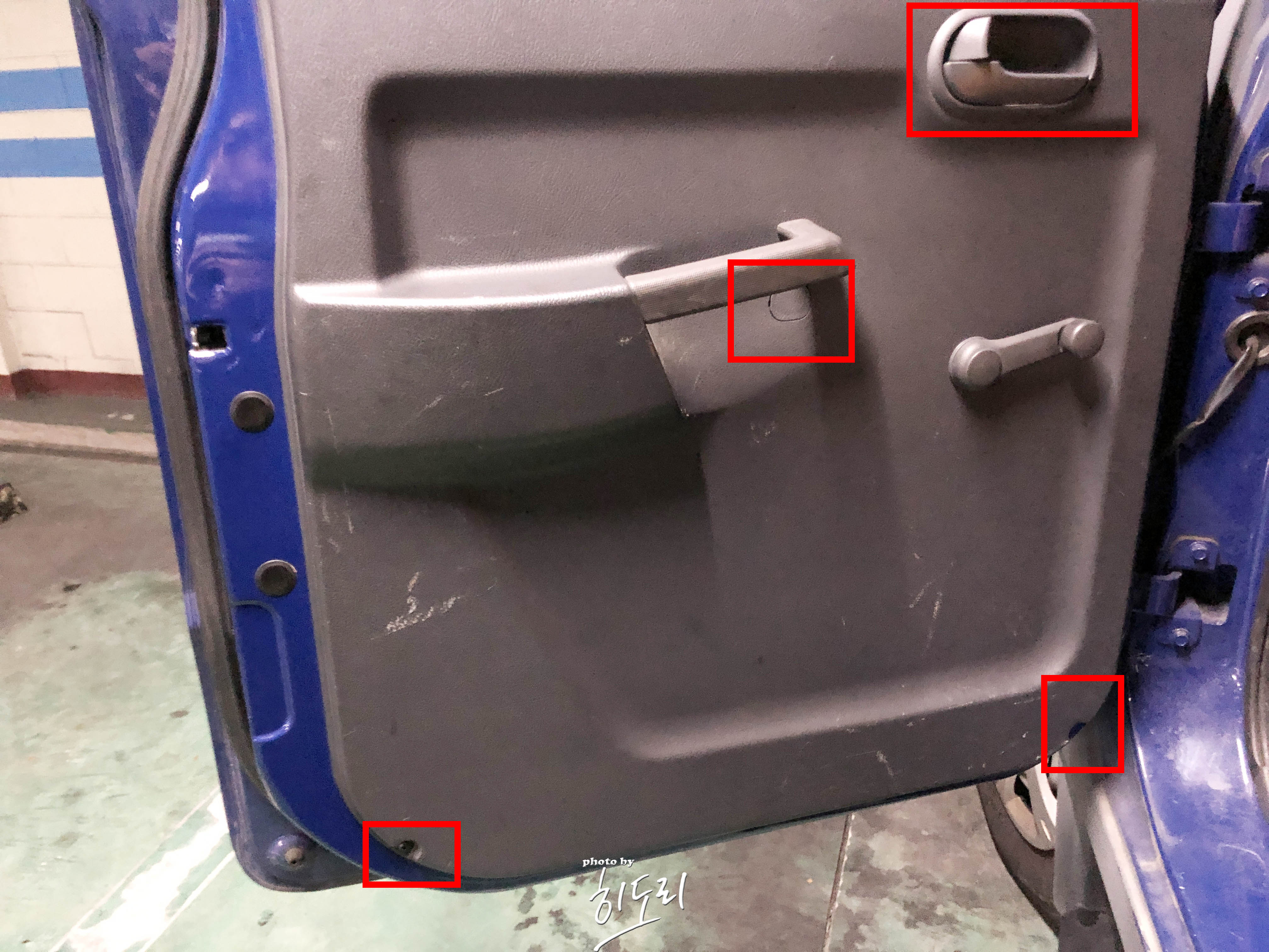 먼저 도어 안쪽 트림 부분을 탈착 해야 되겠죠?