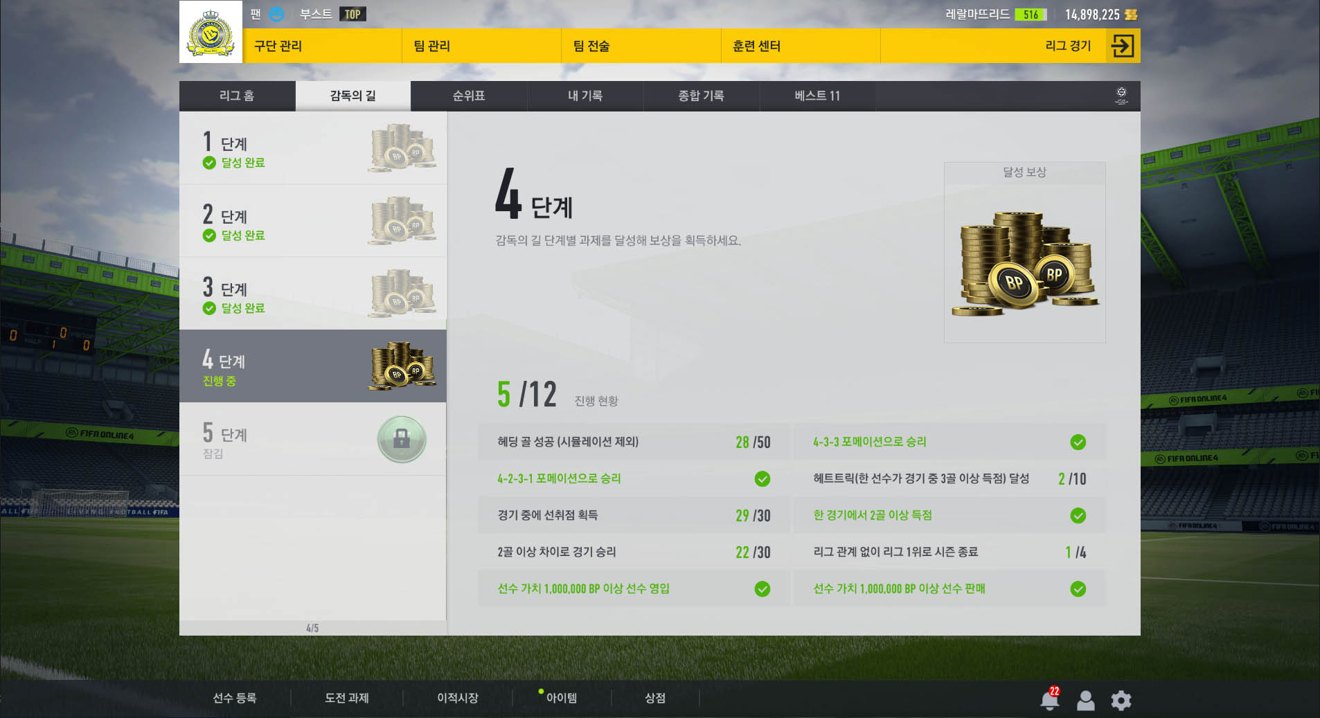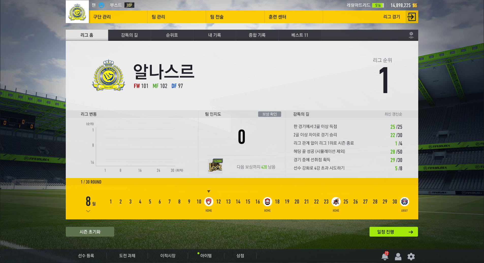 리그모드가 싹 개편이 되어 '감독의 길' 컨텐츠가 만들어졌습니다.