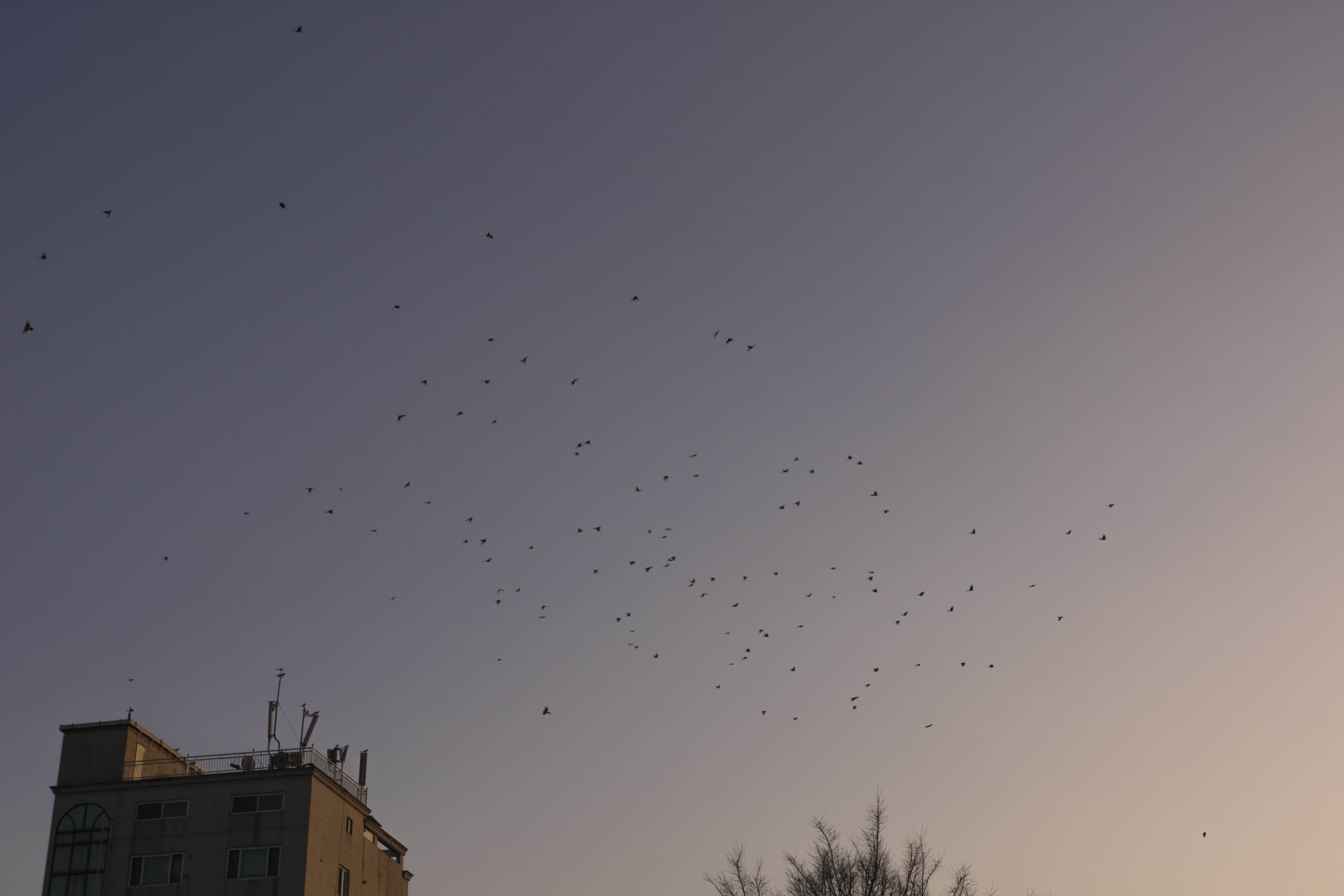 시간이 조금 더 흘러 어둑어둑해지니 떼까마귀 떼가 조금씩 보이기 시작했습니다.