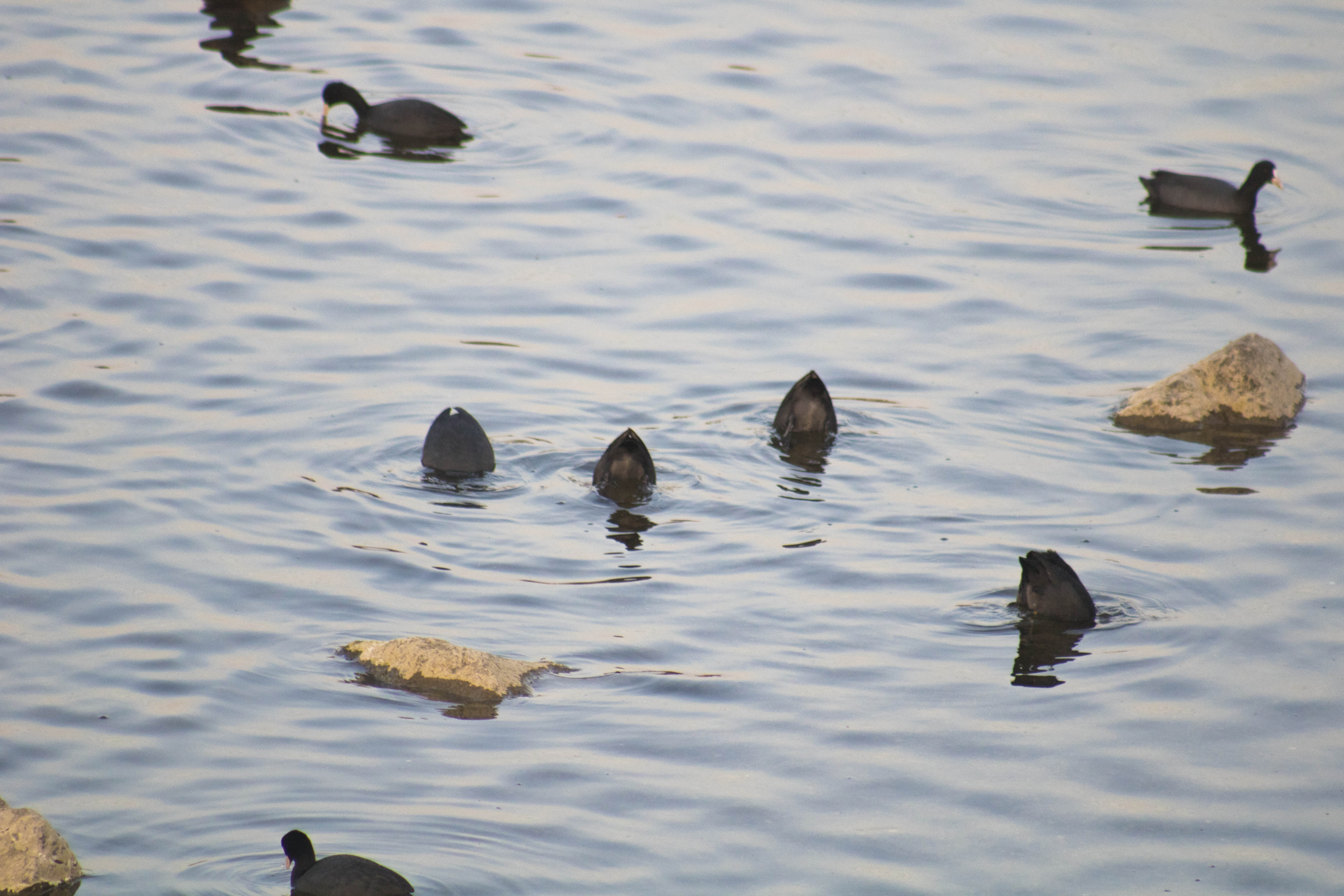 오리 떼들은 유유자적하게 헤엄을 치고 잠수를 해가며 물고기 사냥에 정신이 없어 보입니다.