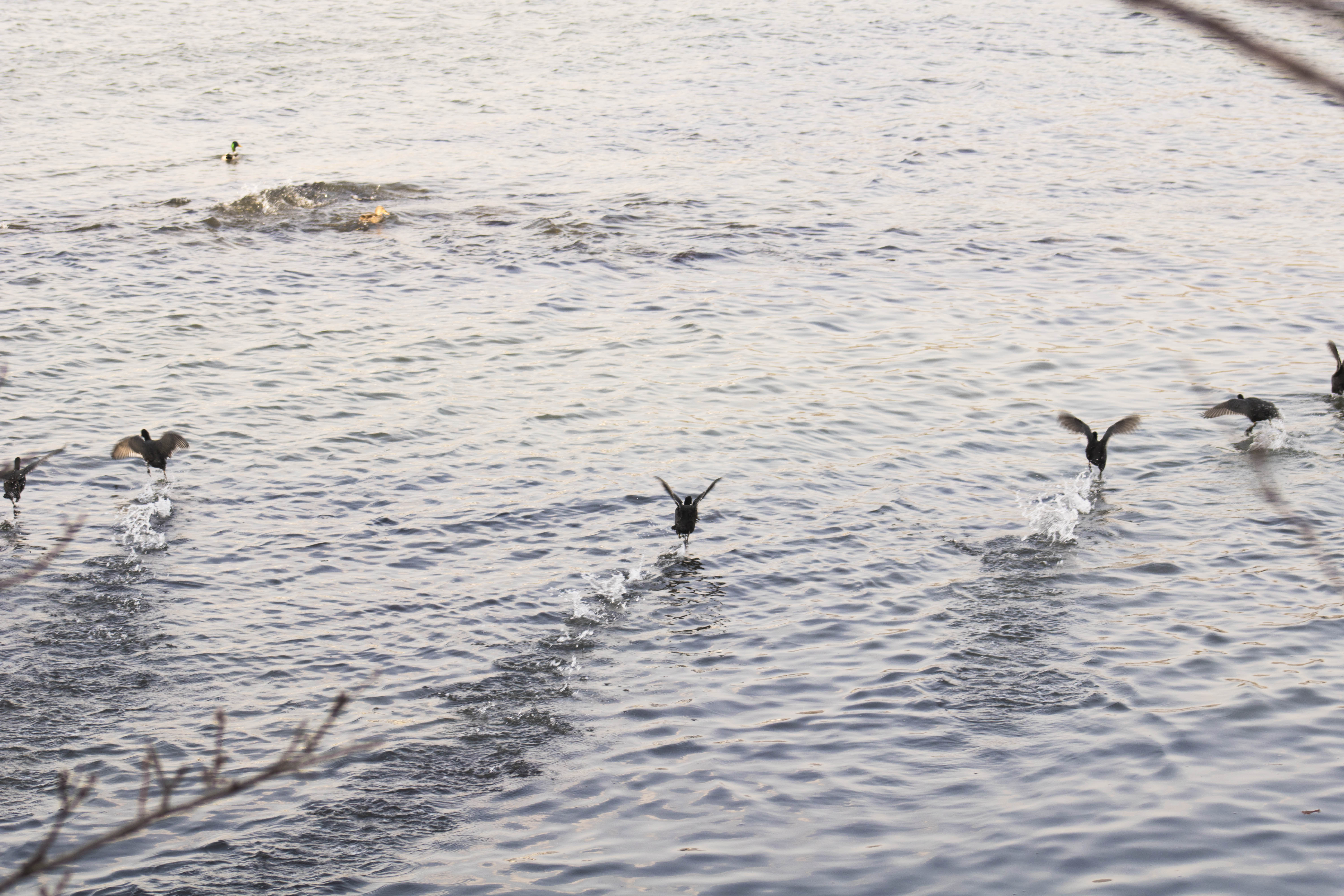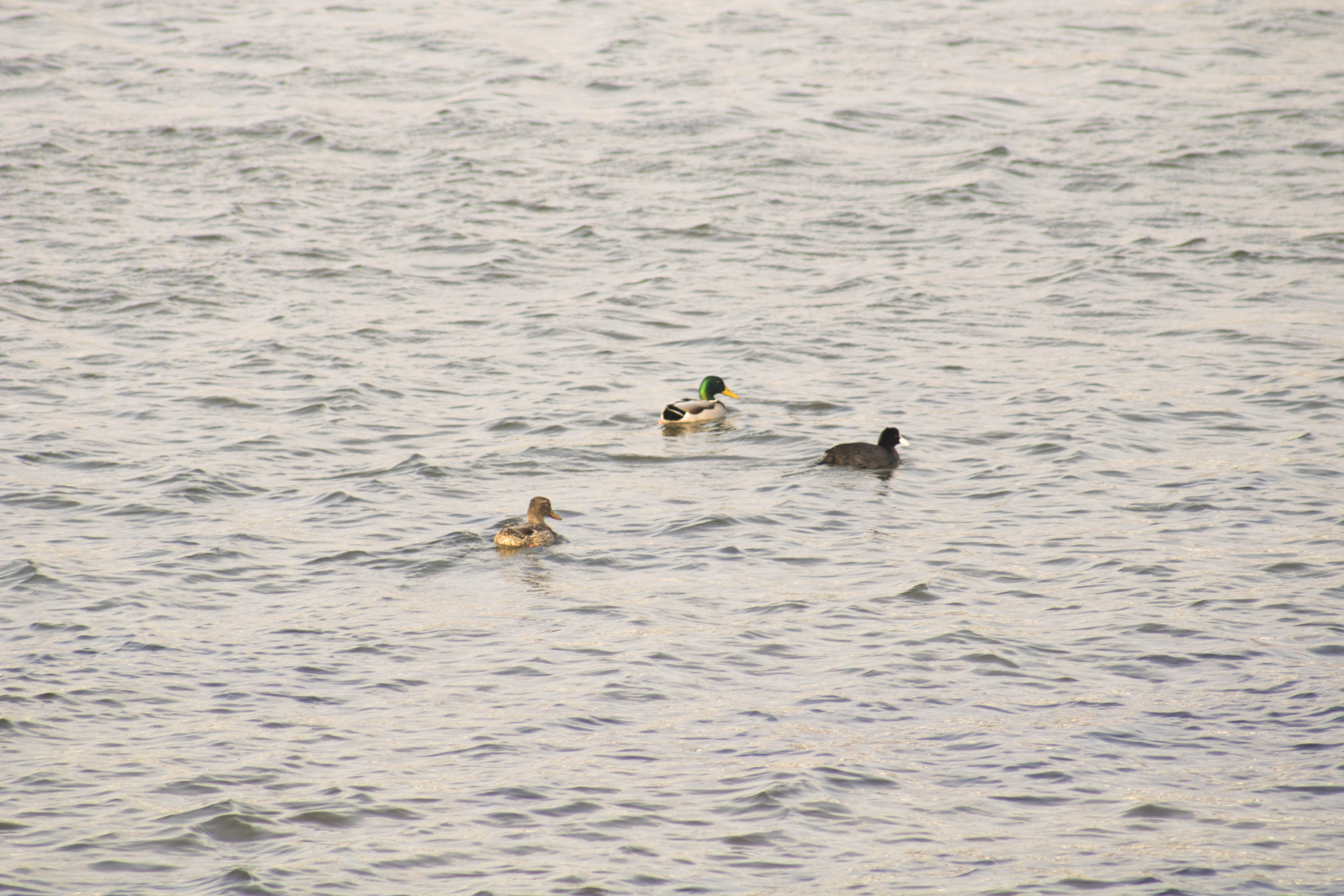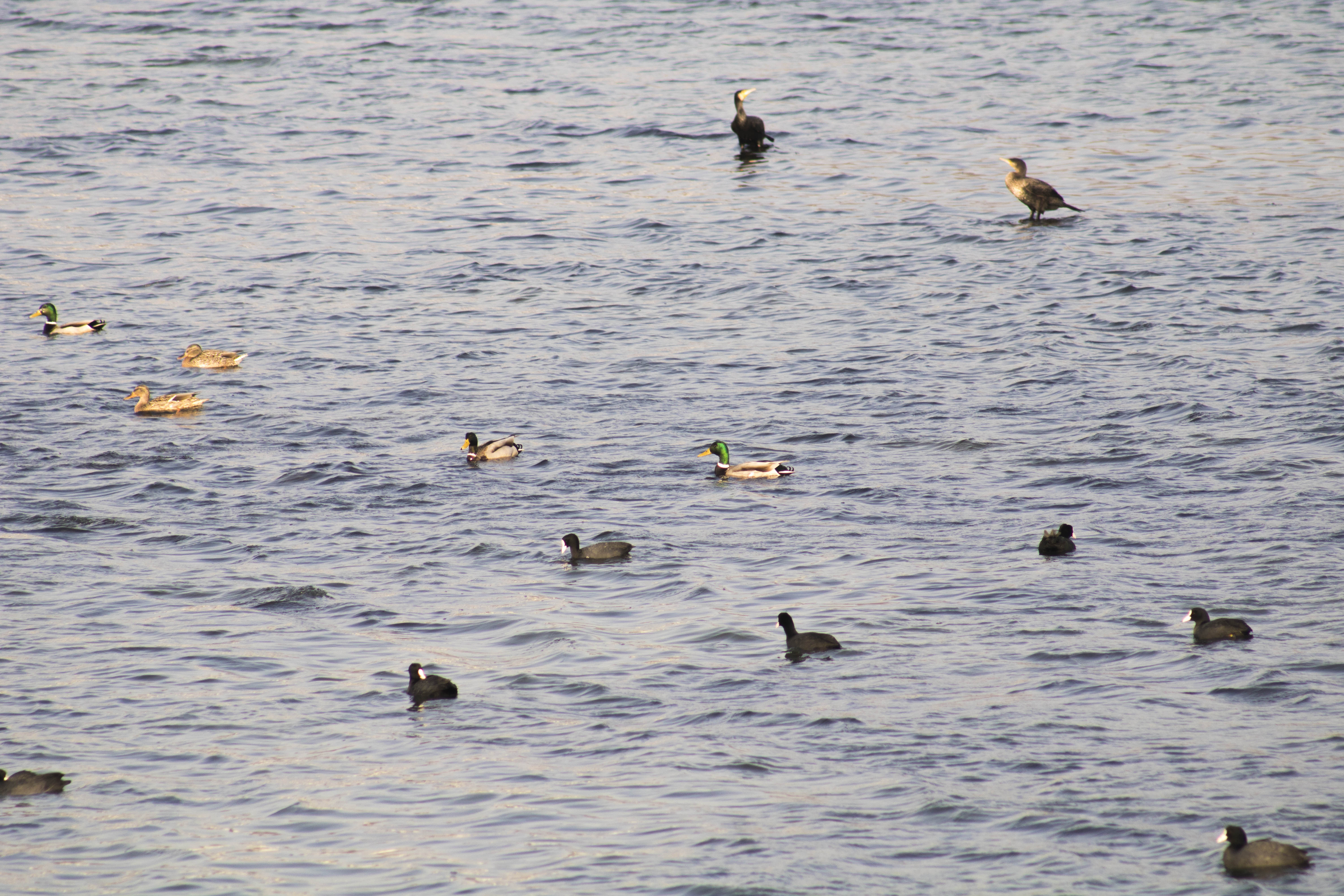 아직 떼까마귀는 도착을 안 했지만 떼까마귀뿐만 아니라 많은 철새들이 물 위를 헤엄치고 있었습니다.