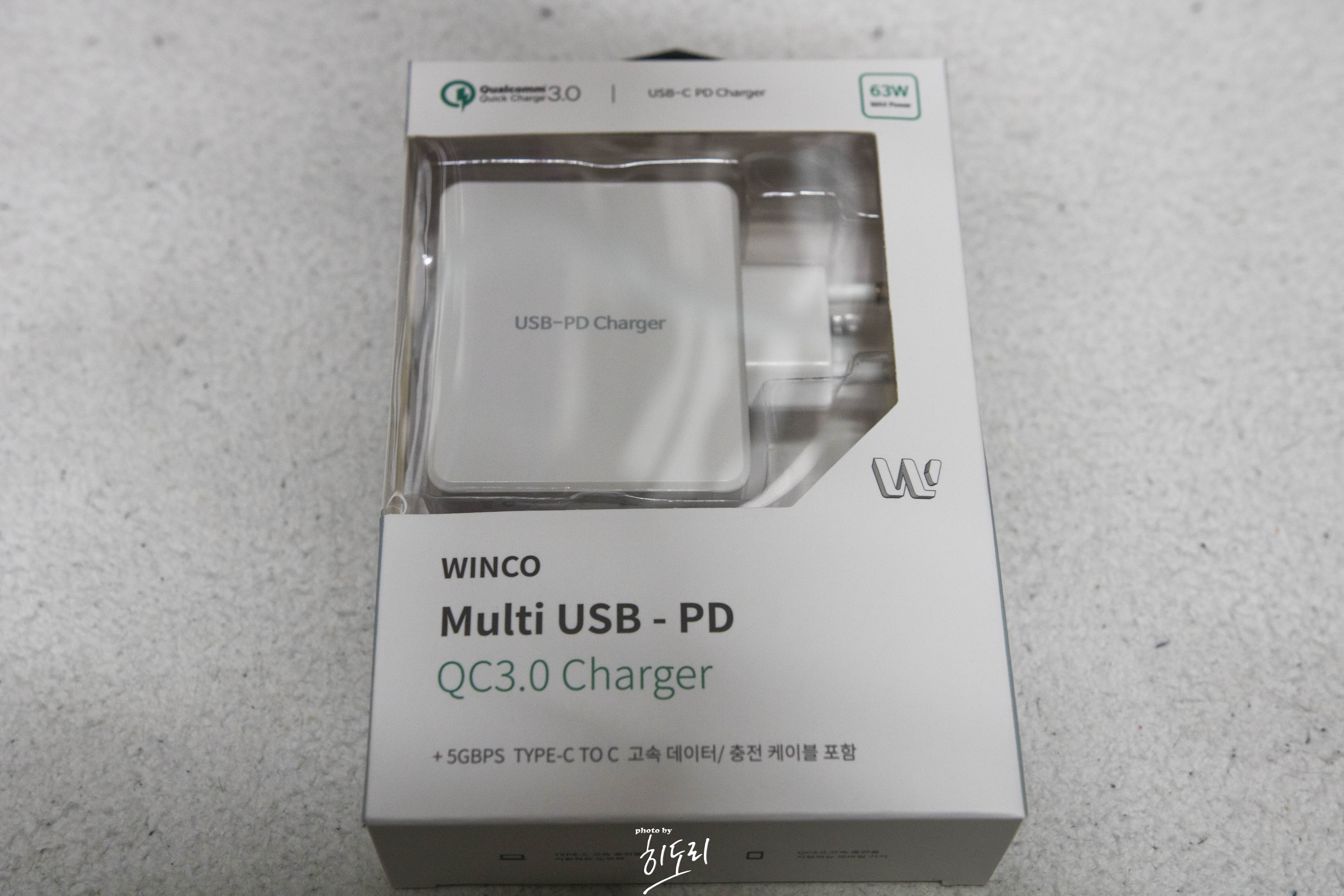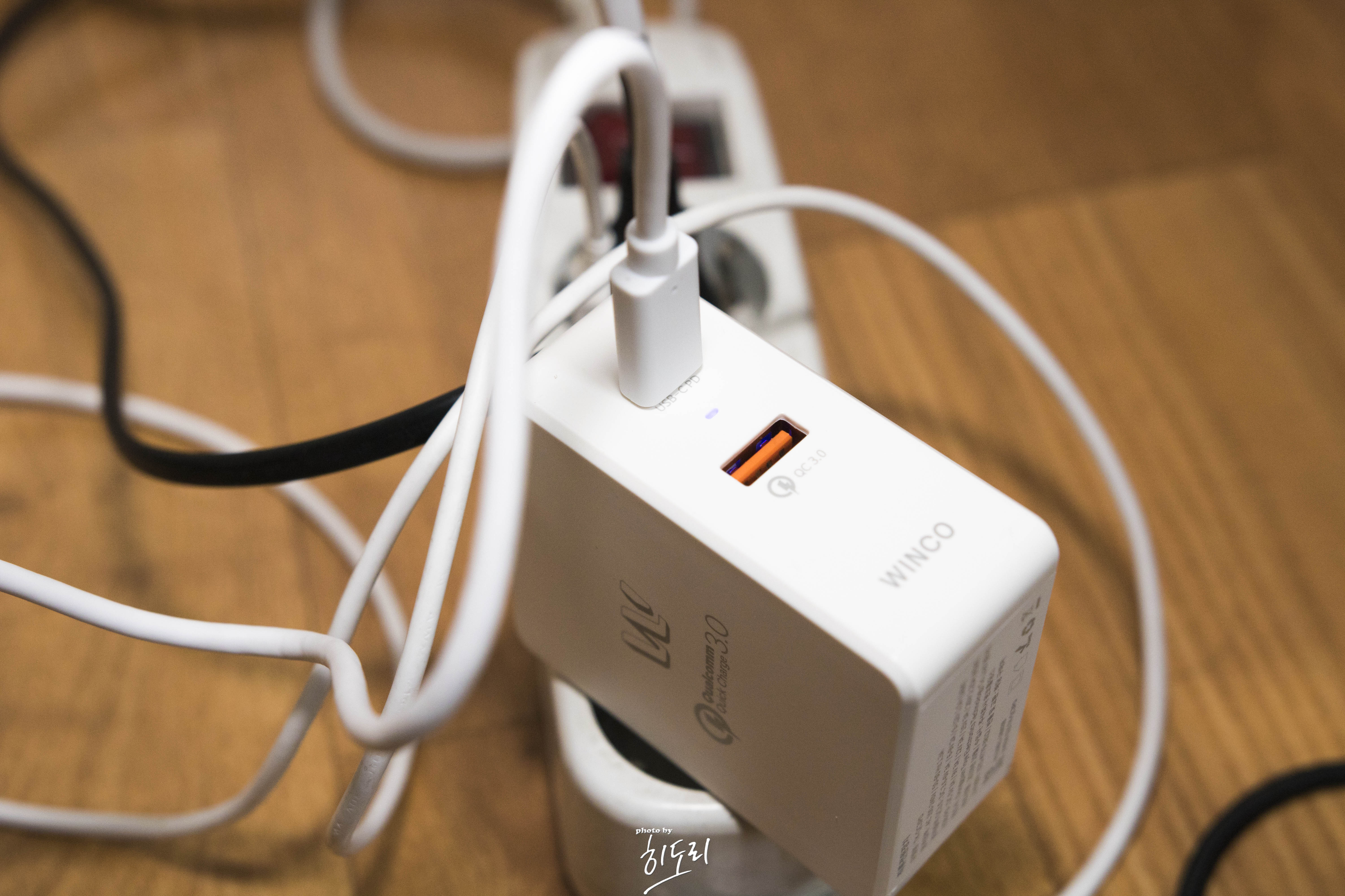 그래서 인터넷으로 저렴하면서 usb-pd 와 qc3.0을 지원하는 윈코 멀티 고속 충전기를 구입했습니다.