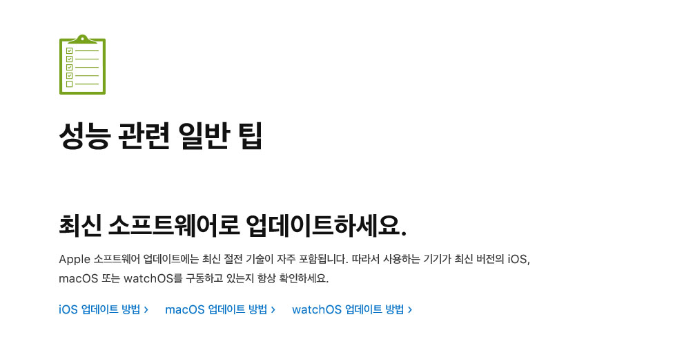 아이폰은 심플하고 직관적인 사용 경험을 전달하도록 설계되었습니다. 이는 최신 기술과 정교한 엔지니어링이 접목될 때에만 가능합니다. 그중 중요한 기술이 배터리와 성능에 관련된 부분입니다. 배터리는 복잡한 기술로 여러 가지 변수가 배터리 성능과 아이폰 성능에 영향을 미칩니다.