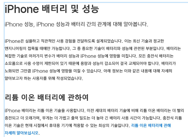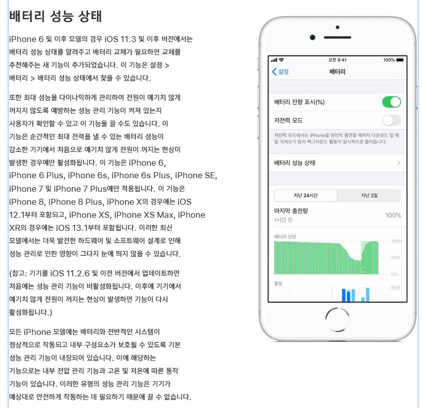 라고 표시가 되어 애플 홈페이지에서 아이폰 배터리와 성능관리에 대해 알아볼까 합니다.
