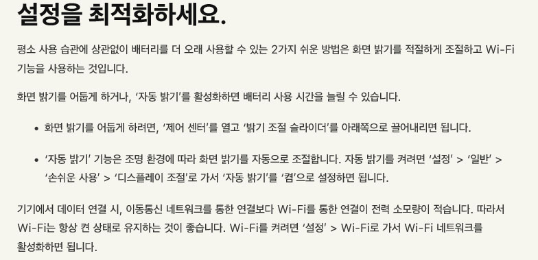배터리 사용 시간 및 수명 최대치를 쫌 더 살펴봅시다.
