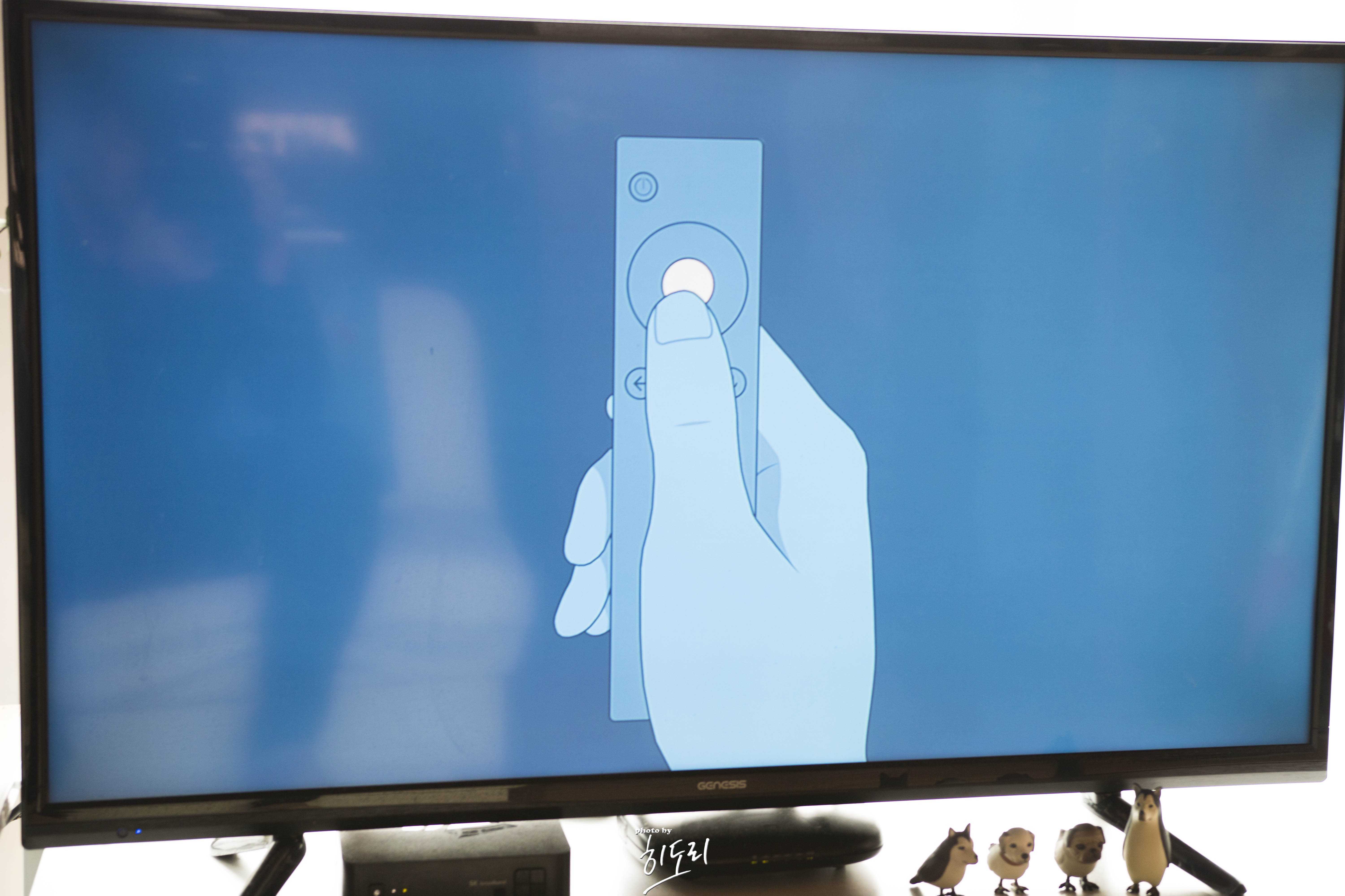 먼저 제일 처음 켜면 리모컨 버튼을 눌리라고 합니다.