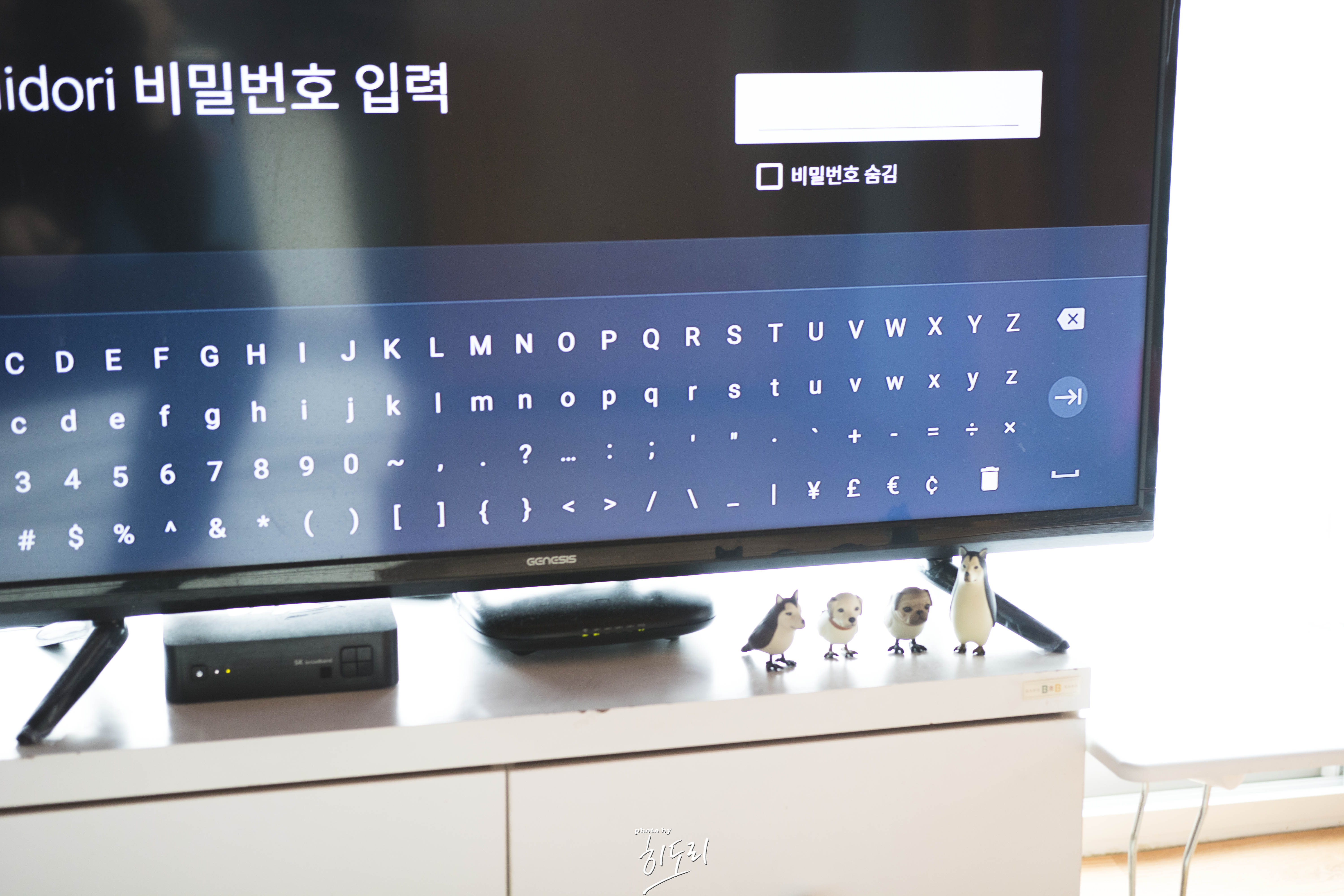 영문 키보드는 리모컨으로도 사용이 가능하지만 안드로이드 시스템 답게 안드로이드 스마트폰을 사용한다면 스마트폰을 이용해 리모컨 대신 사용이 가능합니다.