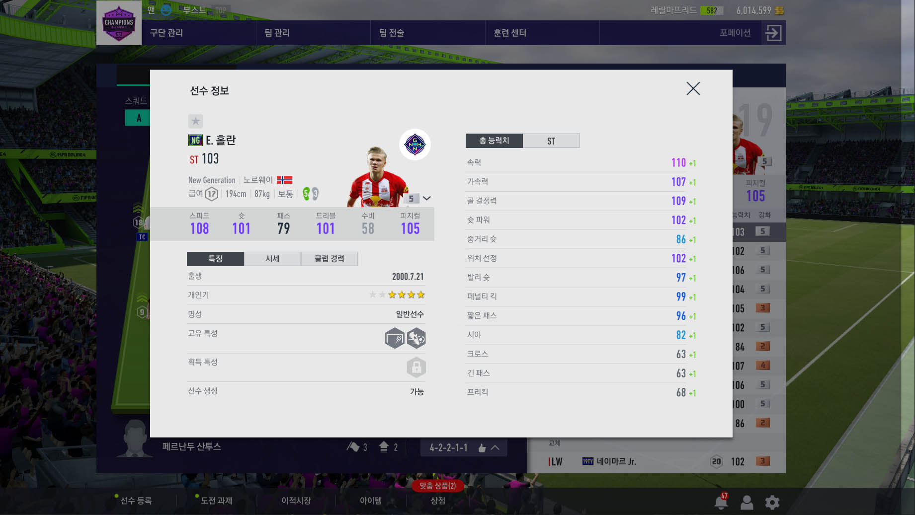 넥슨에서 새로운 시즌이 어떤것이 나올지 모르겠지만 홀란은 NG시즌이 당분간은 제일 스텟이 짱짱할듯 하네요~