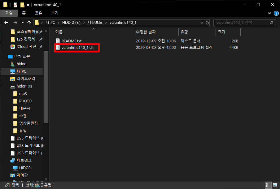 다운을 받으시고 압축파일을 풀면 vcruntime140,dll 파일이 보입니다.