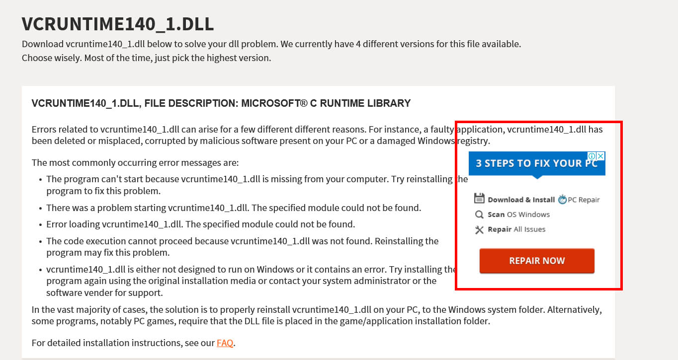 vcruntime140_1.dll, File description: Microsoft® C Runtime Library Errors related to vcruntime140_1.dll can arise for a few different different reasons. For instance, a faulty application, vcruntime140_1.dll has been deleted or misplaced, corrupted by mali