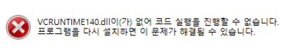 만약 윗 방법으로 vcruntime140,dll 오류가 안고쳐진다면 두번째 방법으로 넘어가봅시다.