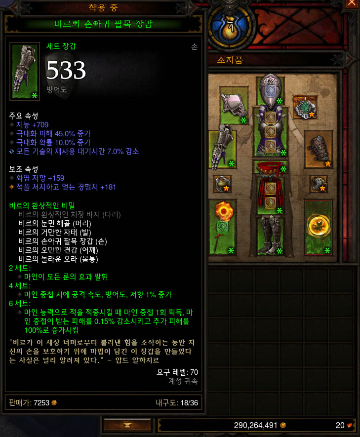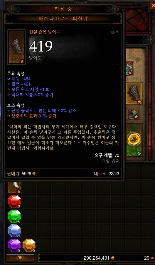 손목부분은 마법무기 스킬의 효과를 증가시키기 위한 애쉬가나르의 피칠갑으로 셋팅~