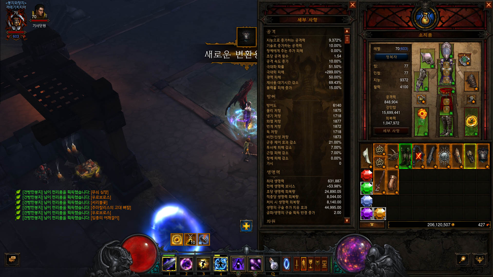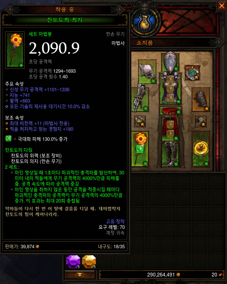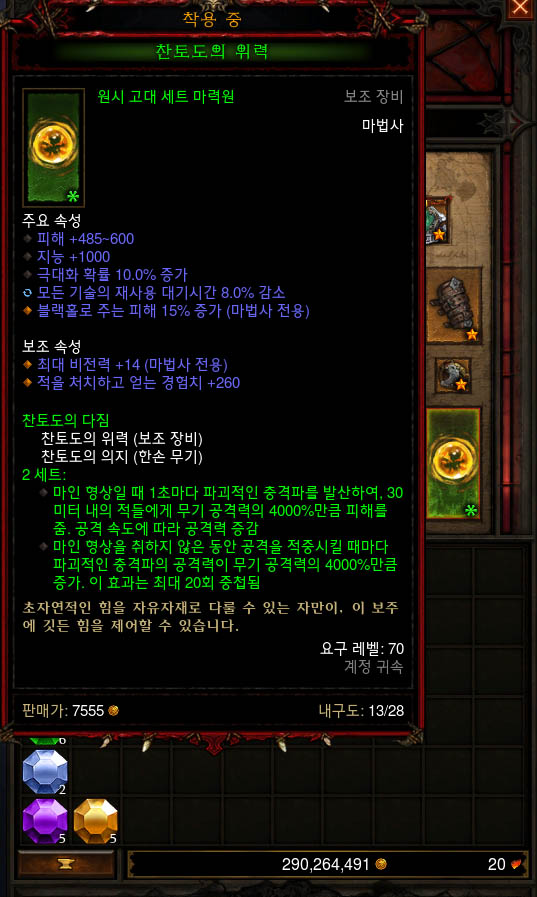 마법무기,천둥갑옷 시전 후 비전 격류로 찬토도 20중첩을 모으는게 핵심입니다.