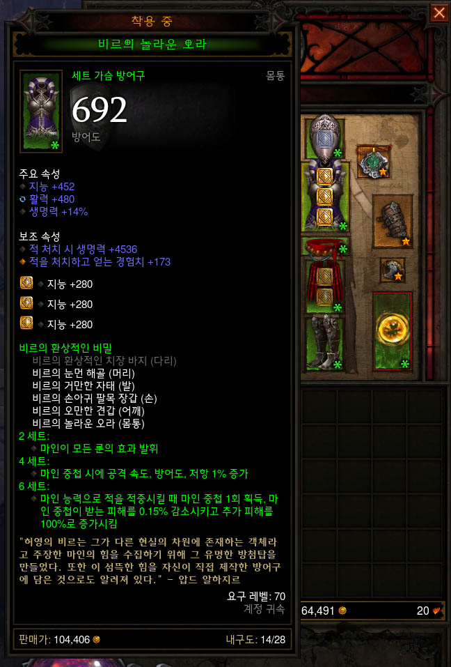 갑옷 - 지능,활력,생명력