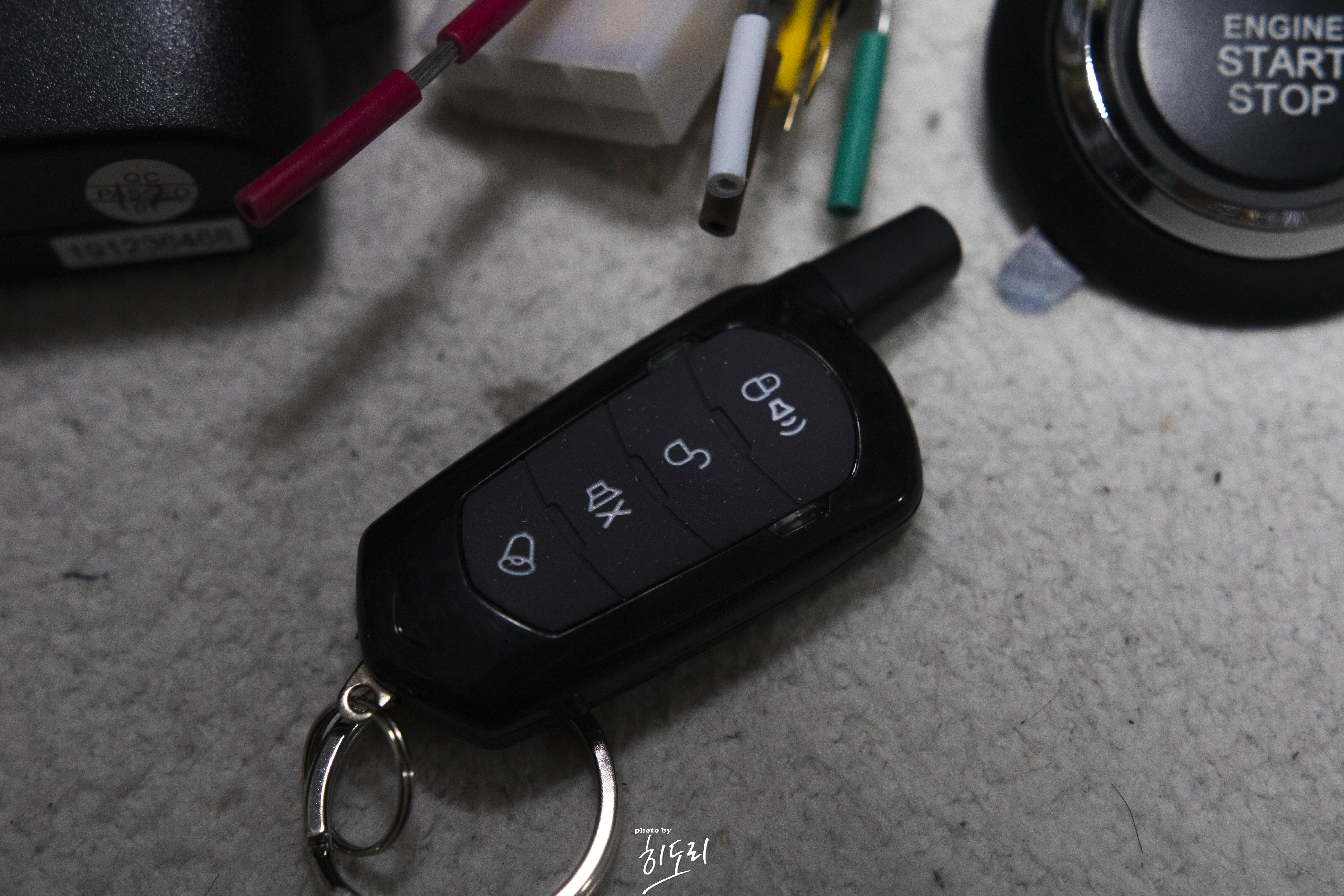 뭐 이것이 중요한게 아니죠! 이 녀석은 스마트폰으로 원격으로 시동걸던가 차문을 잠글수 있기에 굳이 리모컨이 없어도 됩니다.