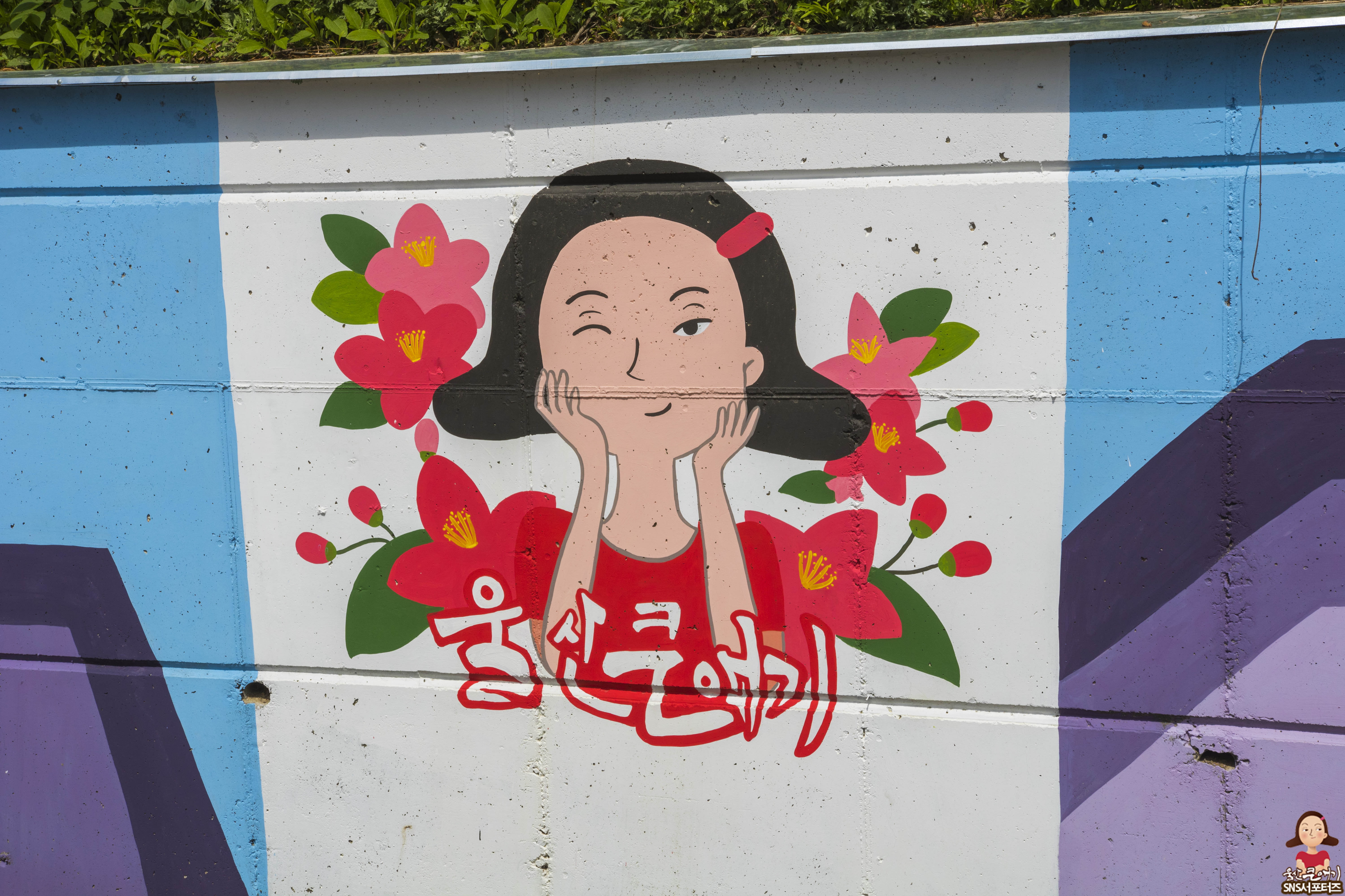 얼마전 방문했던 울산큰애기하우스에 봤던 울산큰애기가 벽에 그림이 그려져 있네요. ㅎㅎ