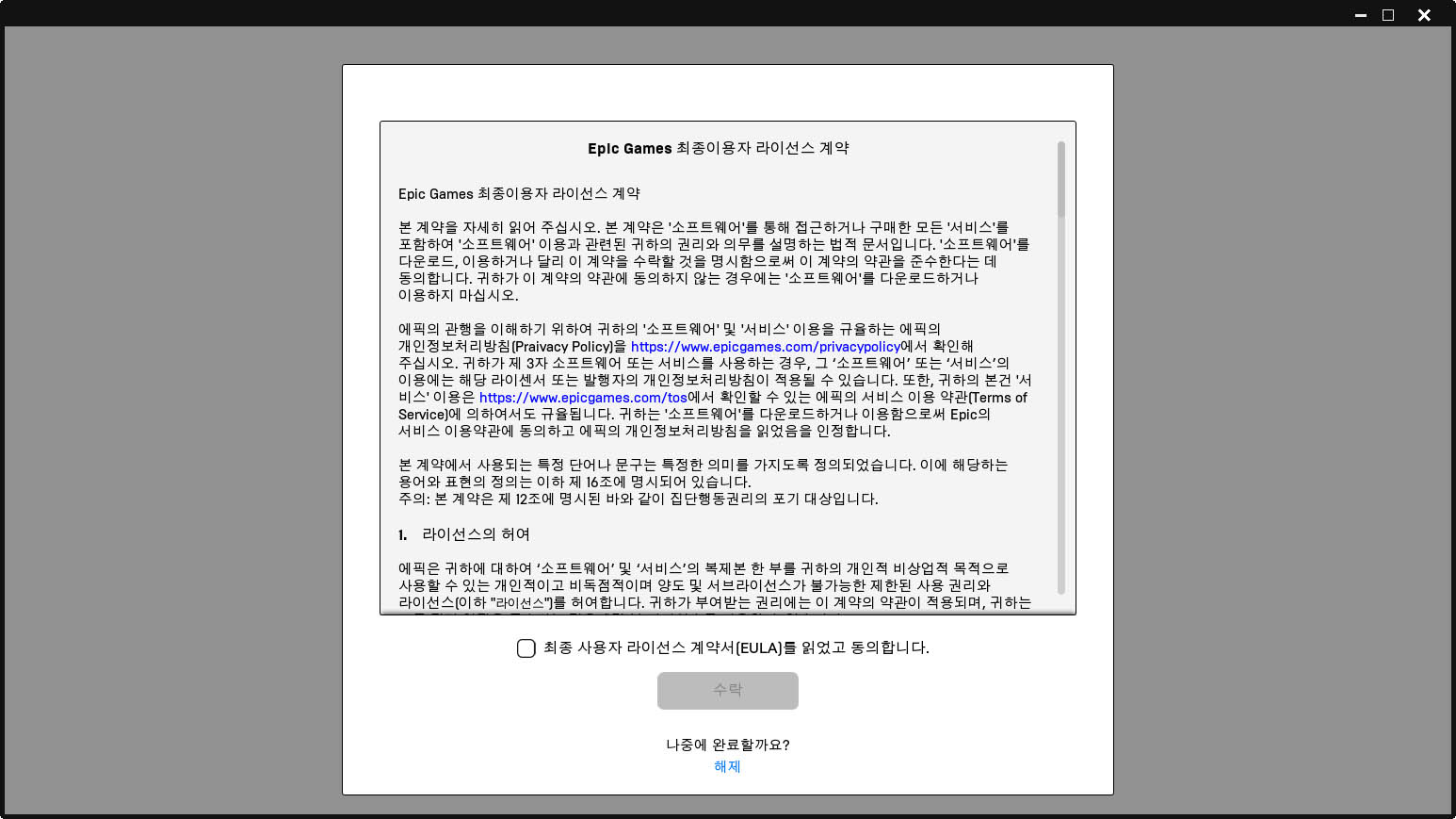 후다닥 에픽게임즈 런처 인스톨을 완료 후~