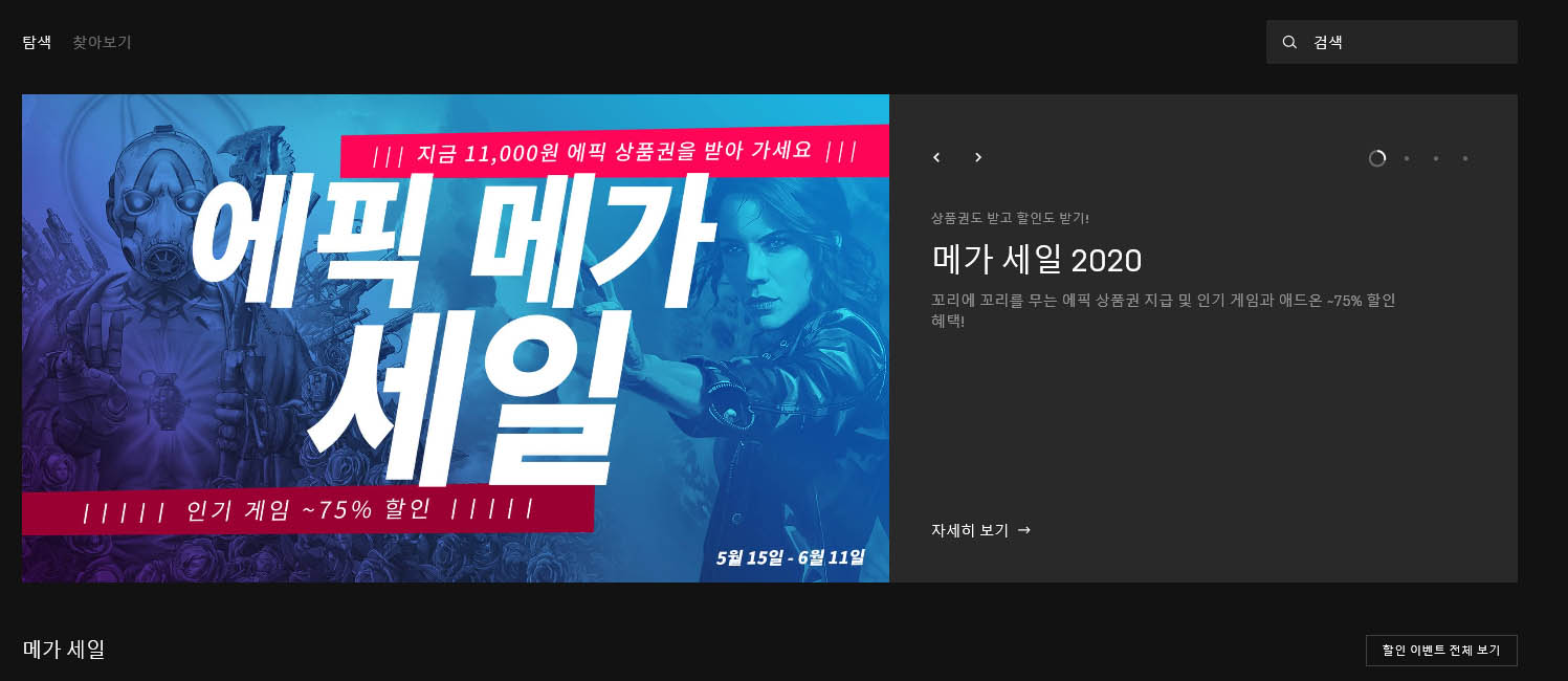 메인화면부터 에픽 메가세일 관련 공지가 떠있네요.