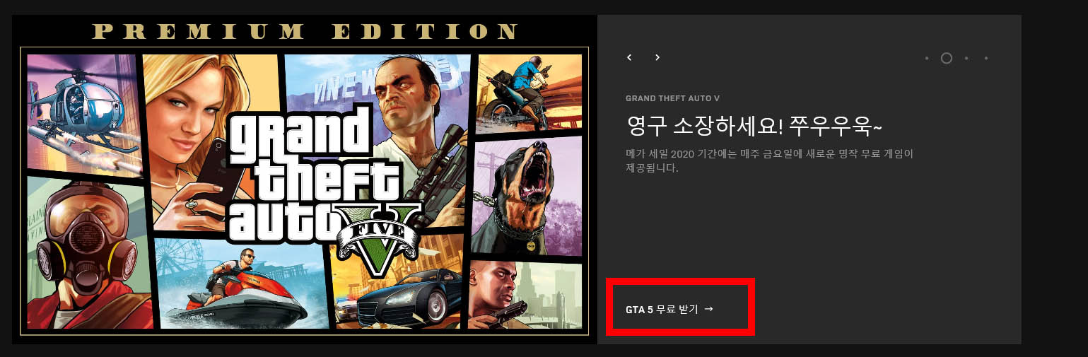 이벤트 기간 중 첫 번째 무료 게임인 GTA5 프리미엄 에디션을 제공하고 다음 주에는 또 어떤 게임이 무료로 제공될지 궁금하기도 하네요.