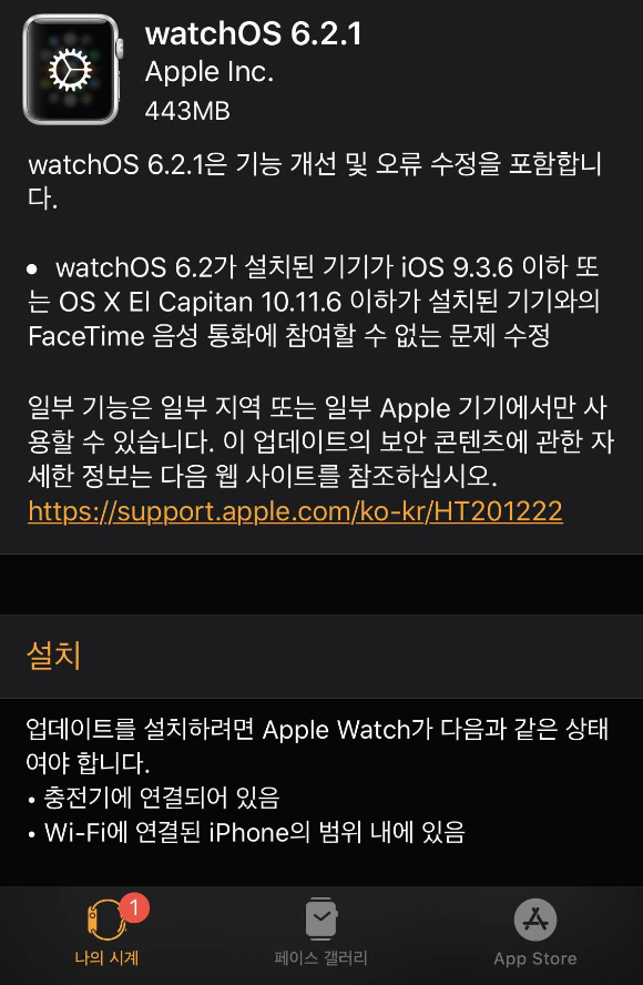 iOS뿐만 아니라 watchOS 6.2.1도 업데이트가 있었습니다.
