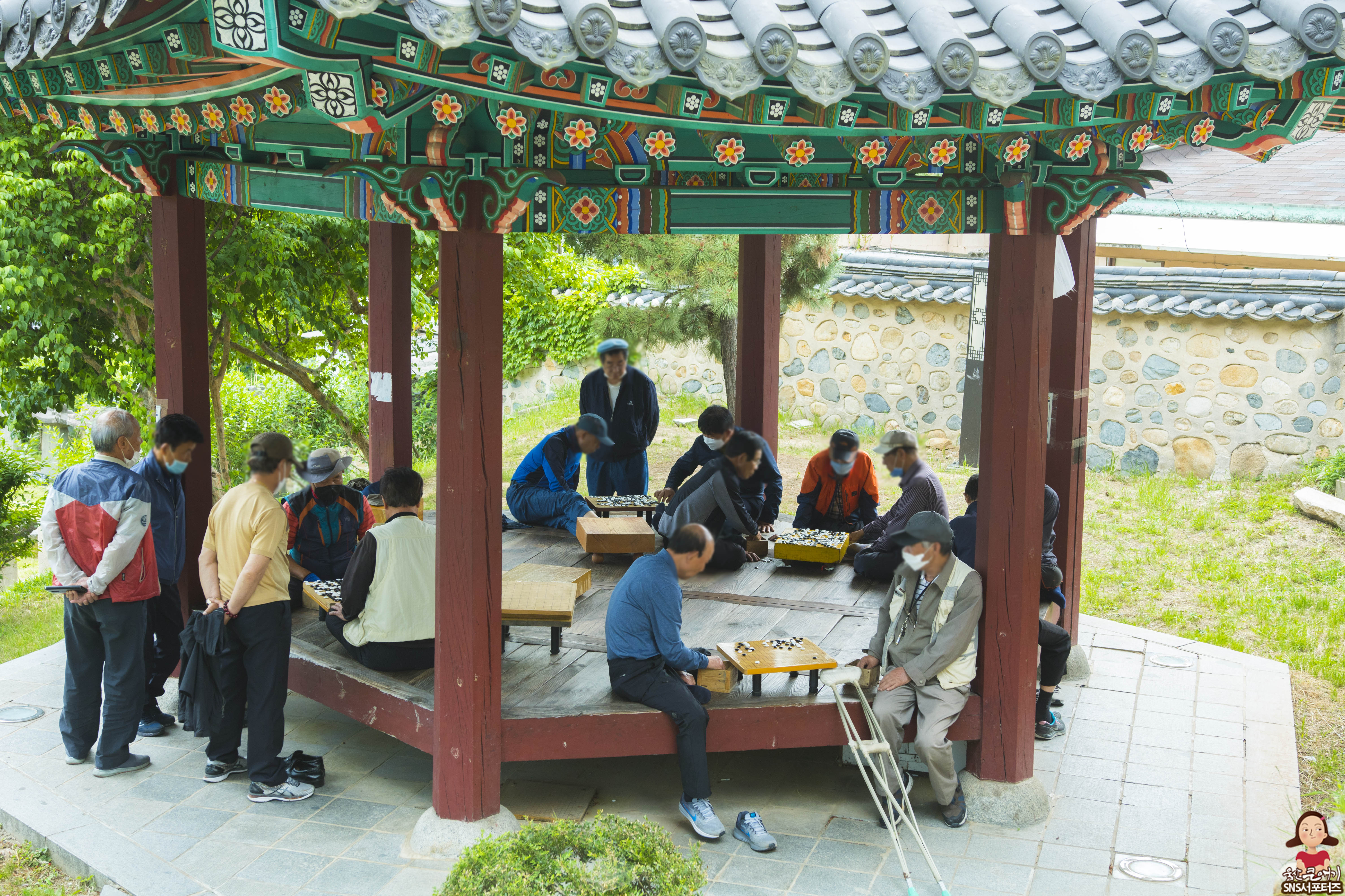 바로 옆쪽에는 작은 정자가 세워져 있는데 마을 어르신들이 바둑을 두시고 계십니다.