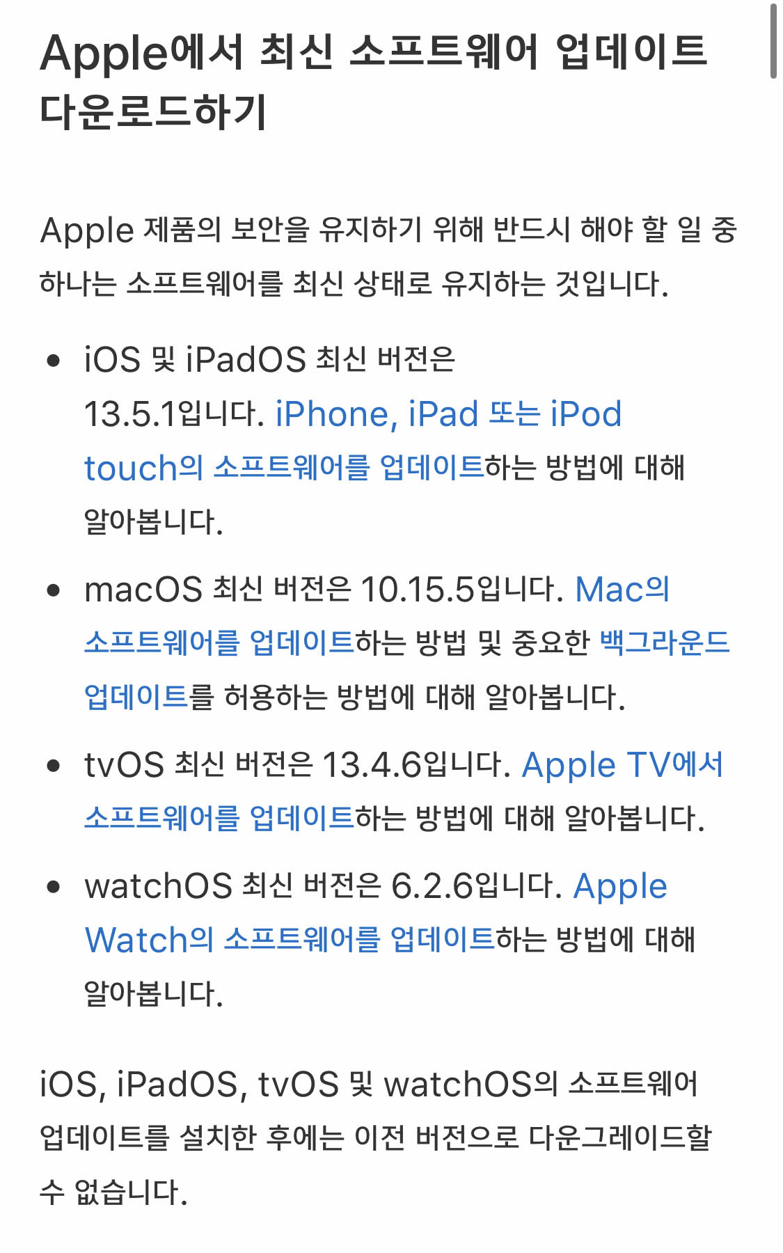 특히 동시에 iOS, watchOS, macOS 업데이트를 배포한것 보면 어딘가 보안에 문제가 있었나 봅니다.