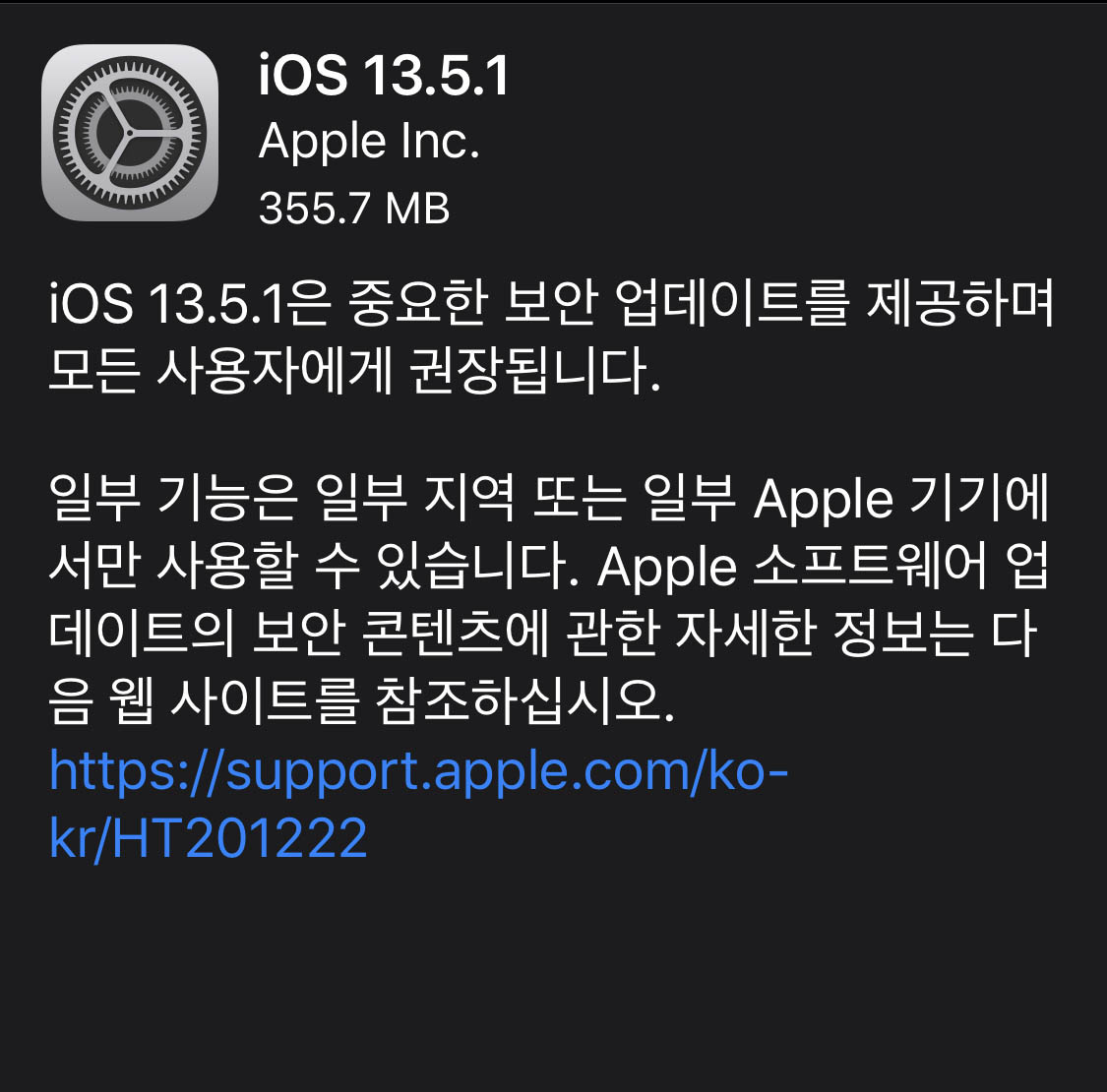 iOS 13.5.1 과 watchOS 6.2.6 업데이트가 배포되었습니다.