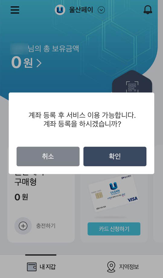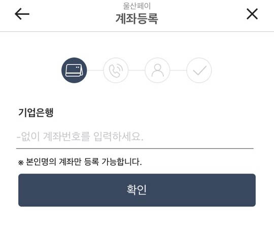 울산페이를 사용하기 위해선 계좌등록이 필요합니다.