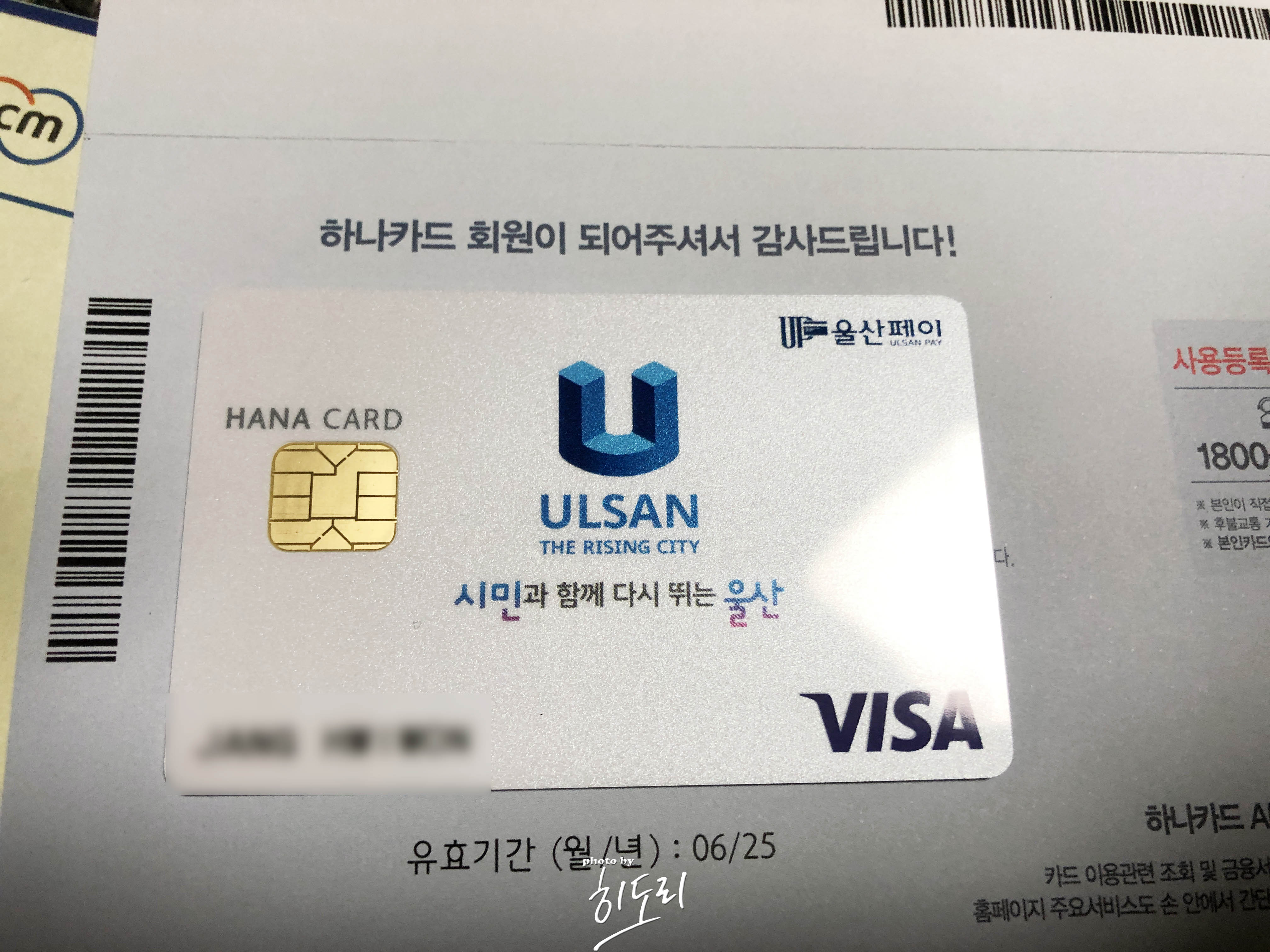 약 일주일 후 발급받은 울산페이 체크카드 입니다.