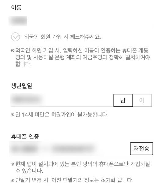 가입을 하기 위해선 각종 권환 허용과 이용약관에 동의를 하셔야 되고