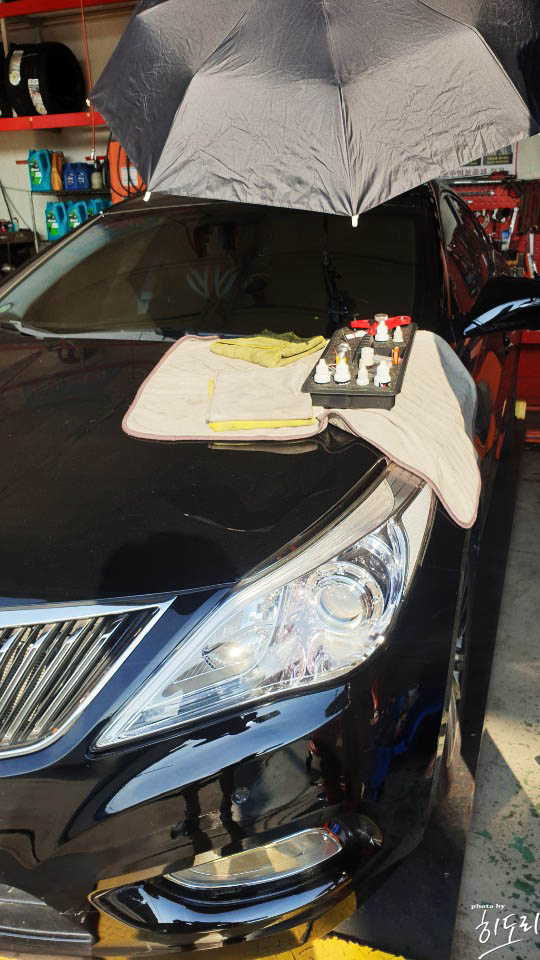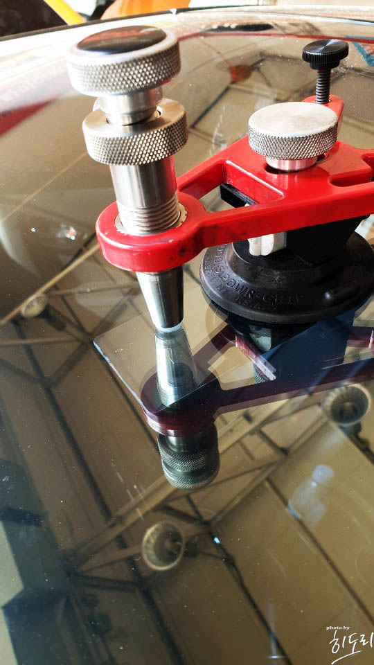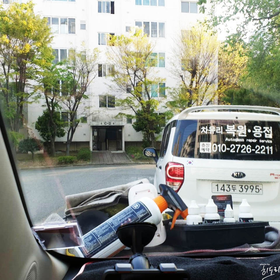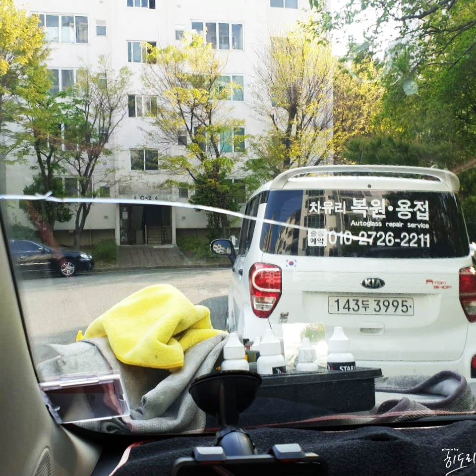윗링크를 보면 예전에 제가 직접 DIY로 유리복원제를 이용해 크랙 땜빵한 글이 있는데 일단 장비빨부터 차이가 나고 확실히 퀄리티가 틀립니다. 전문가의 손길이 틀리긴 틀리는군요.