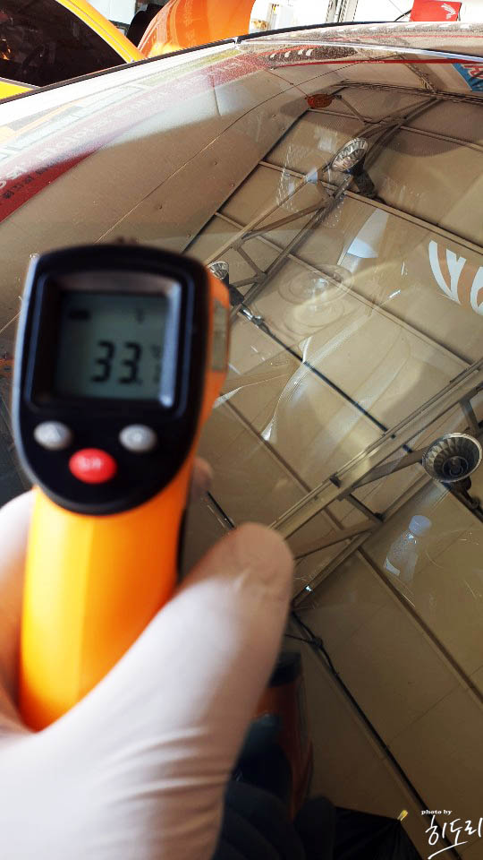 준비가 끝나면 앞유리에 온도가 적정한지 열체크까지 하는 꼼꼼함~