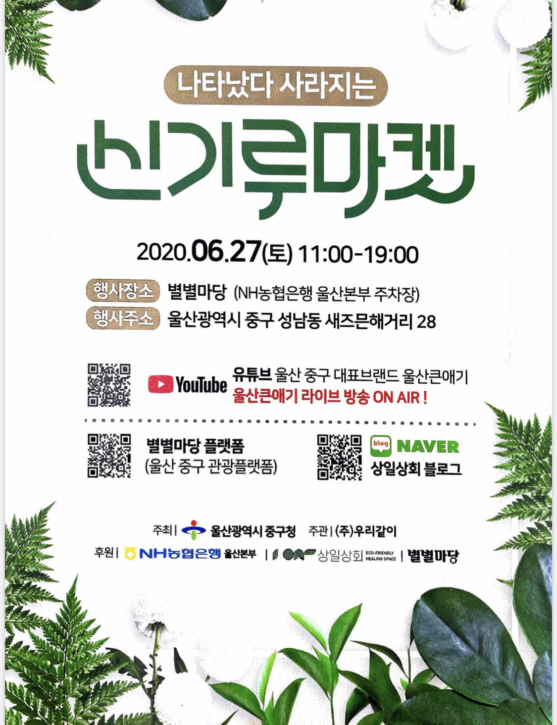 6월 27일에 울산시 중구가 정원과 가드닝을 주제로 한 이색 플리마켓 신기루 마켓을 개최했었습니다.