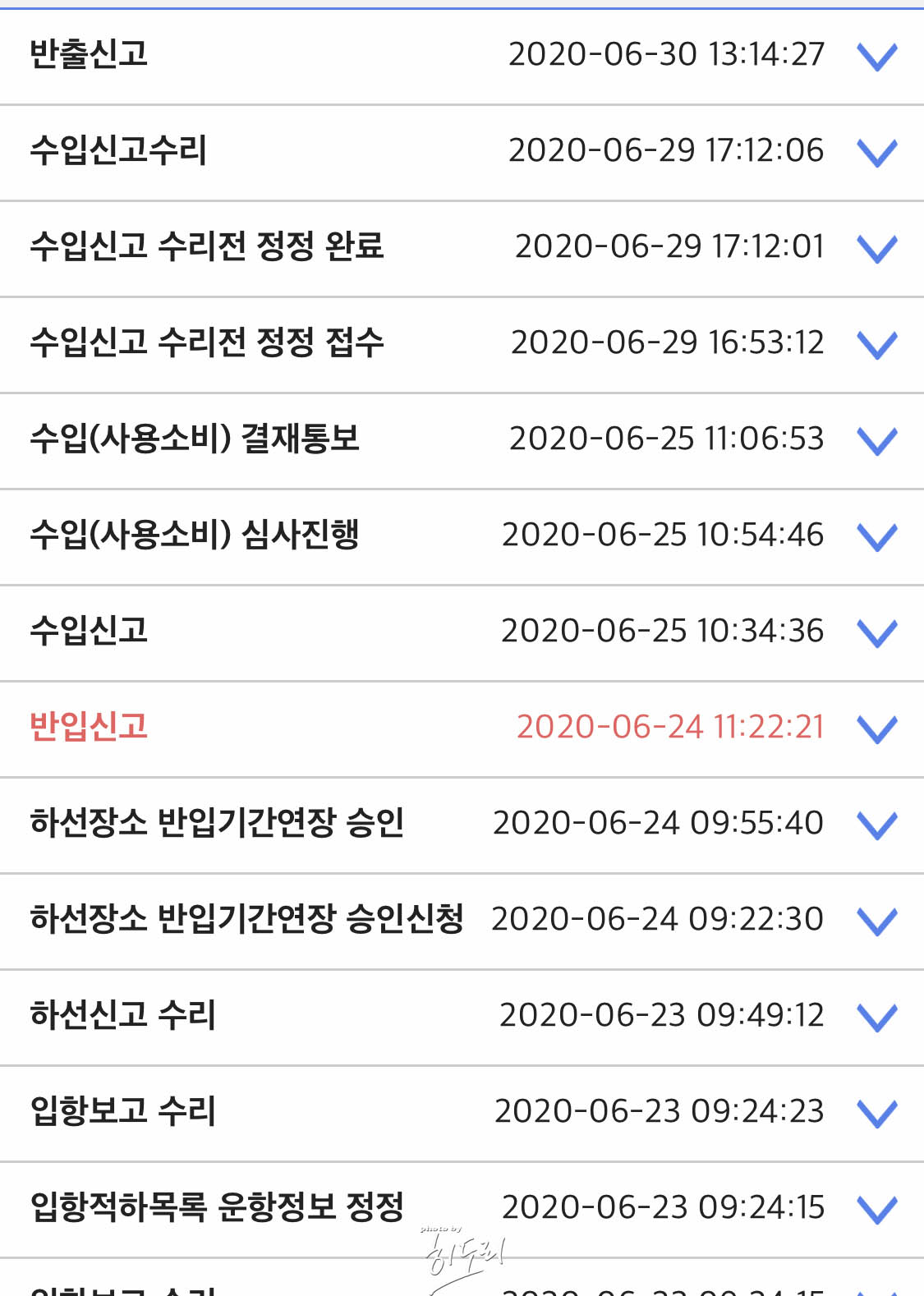 그리고 다음날 드디어 반출신고가 완료가 되고~