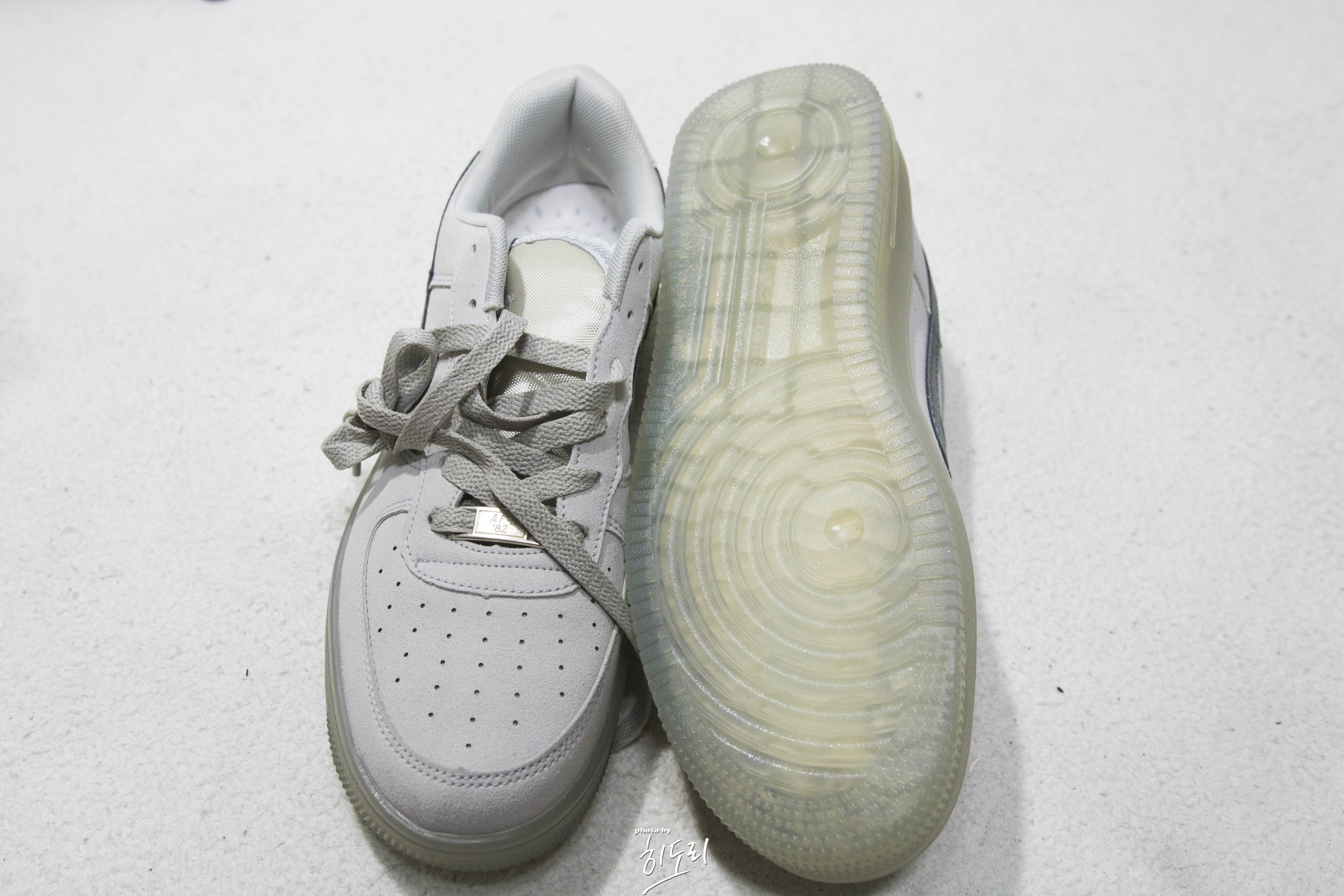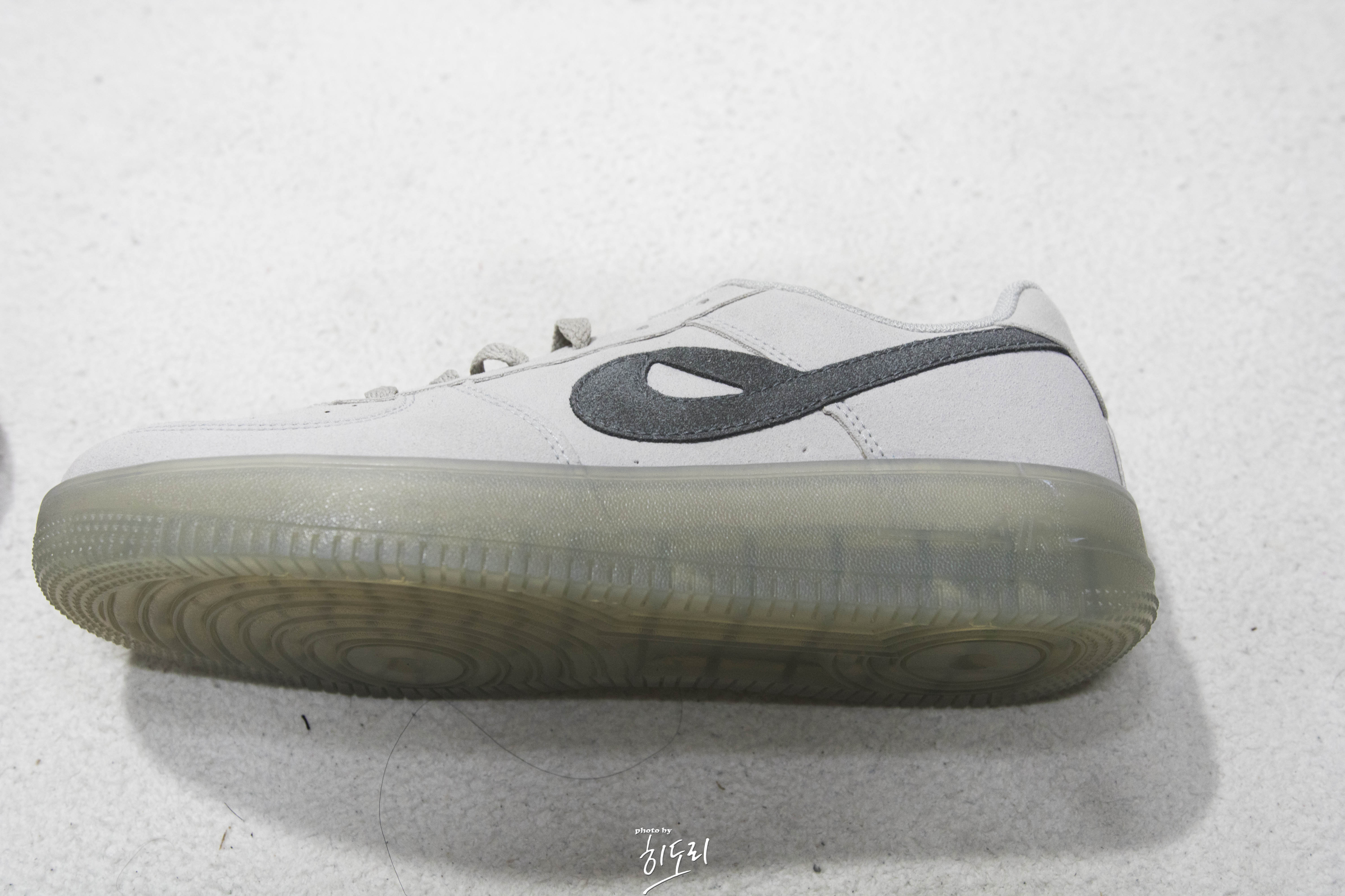 밑창도 에어포스의 모양과 동일하고 이녀석은 특이하게도 반투명재질로 만들어져 있는데 에어포스와 같이 에어포켓 부분이 존재합니다.
