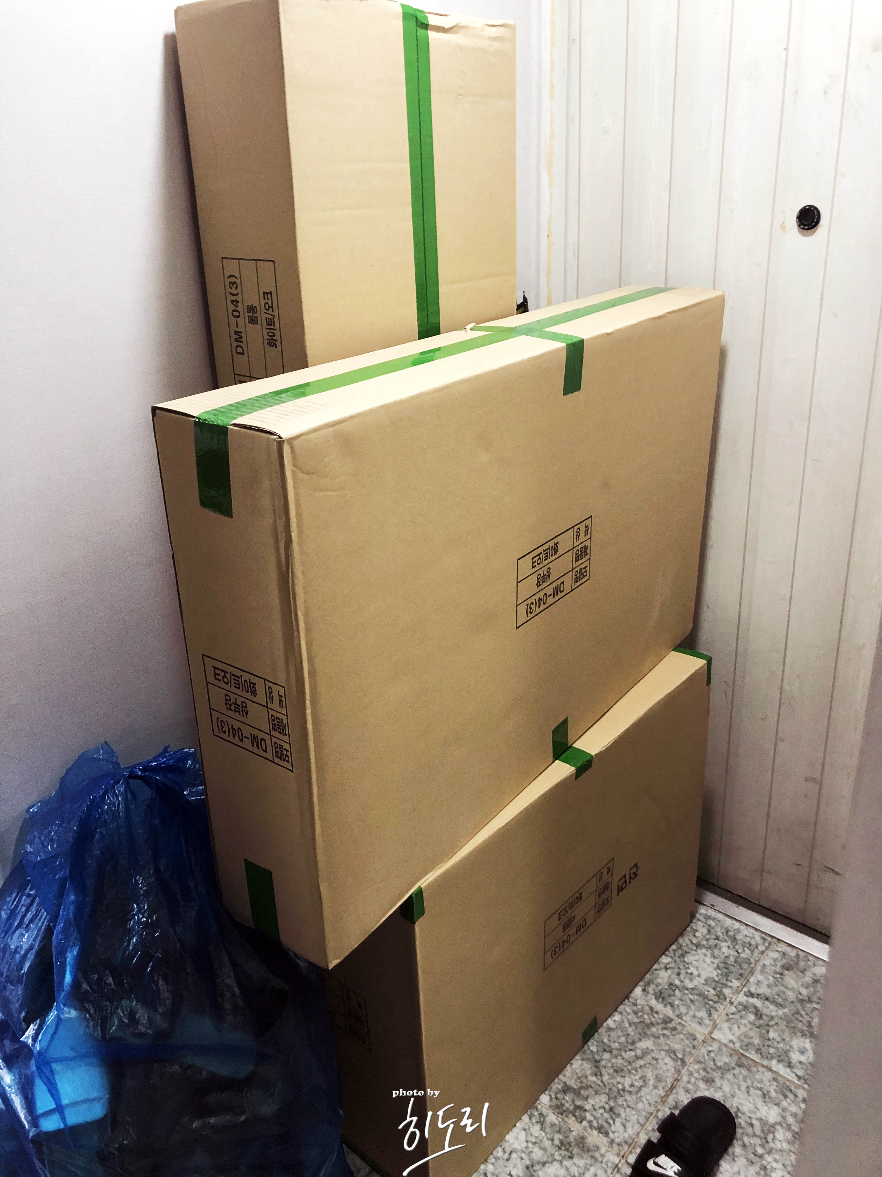 무튼 배송온 시간이 오후 4시... 참 애매한 시간입니다. 어쩔수 없이 현관앞에 놔두고 가시면 직접 조립한다고 했더니 이렇게 상자가 와 있네요.