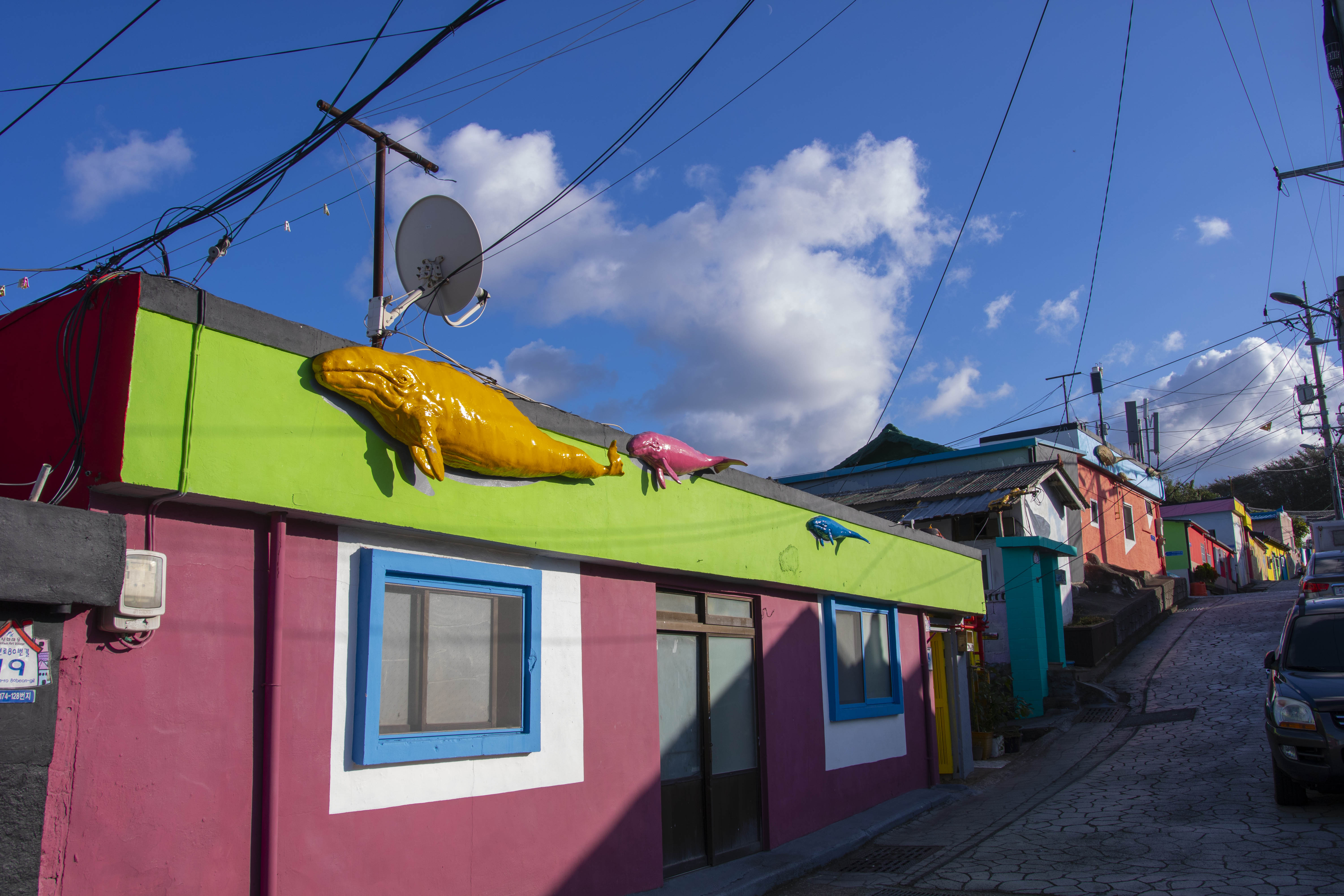 각 골목에는 고래, 암각화, 동화, 착시, 음악, 동심, 한국 명화, 세계 명화 등 다양한 테마로 그려진 벽화들이 있는데 사진으로 살짝 살펴볼까요?