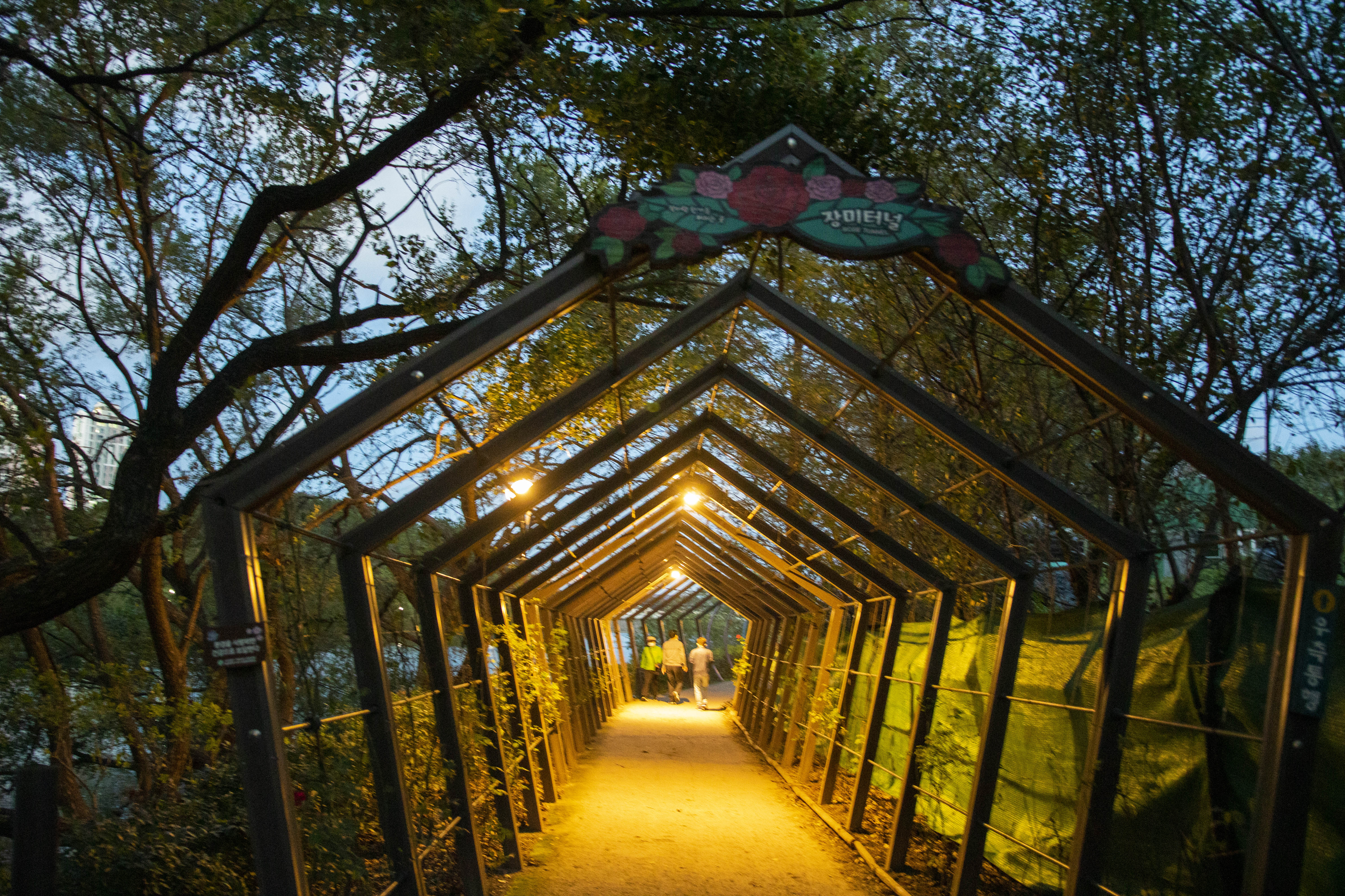 6월쯤 장미가 활짝 개화가 되었을때는 장미에 둘러쌓인 터널의 모습을 보여주는데요.