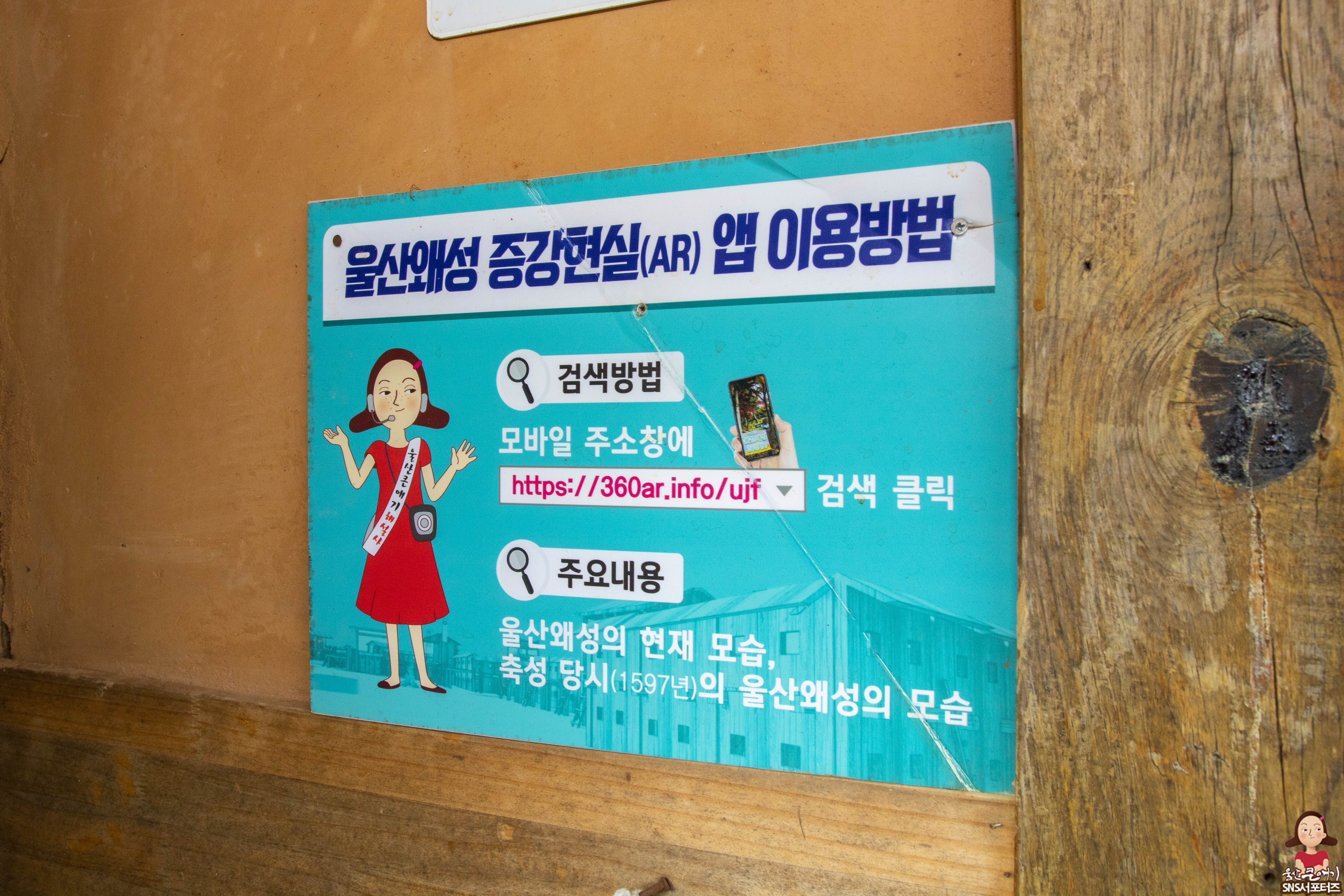 한쪽 벽면에는 울산왜성 증강현실 앱 사용하는 방법을 울산큰애기씨가 알려주네요.
