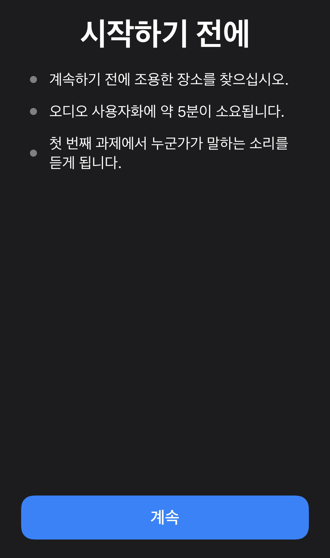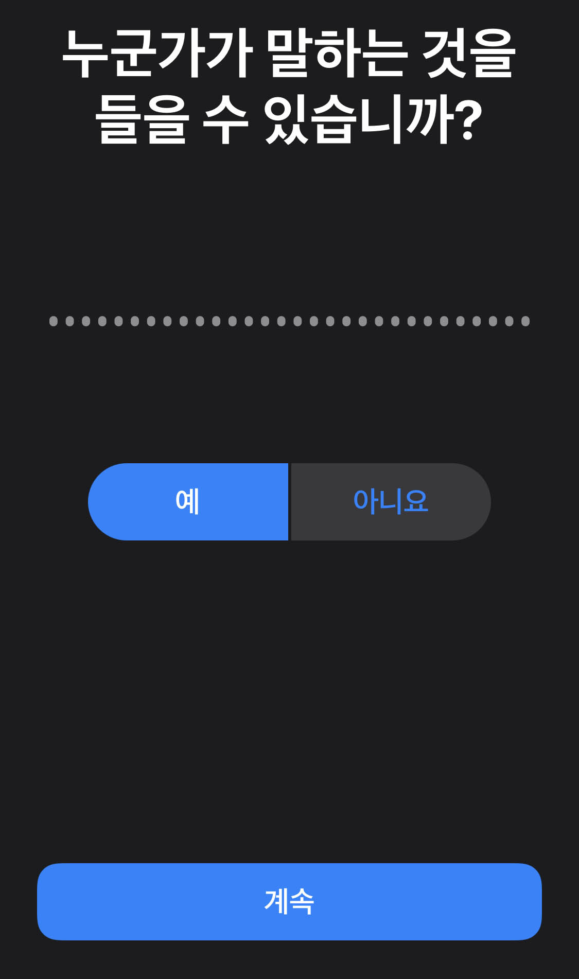 첫번째는 누군가를 말하는 것을 들을 수 있습니가? 라고 나오는데 작은 목소리들이 들려요.